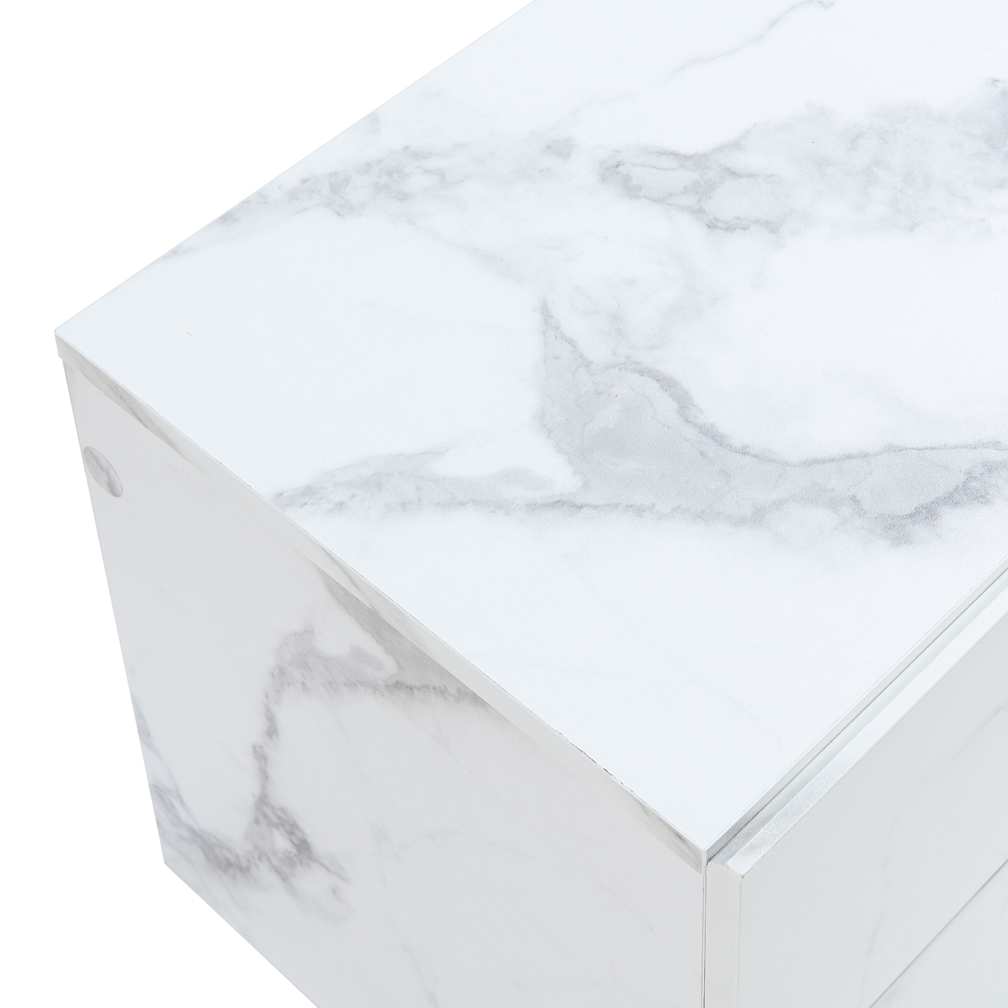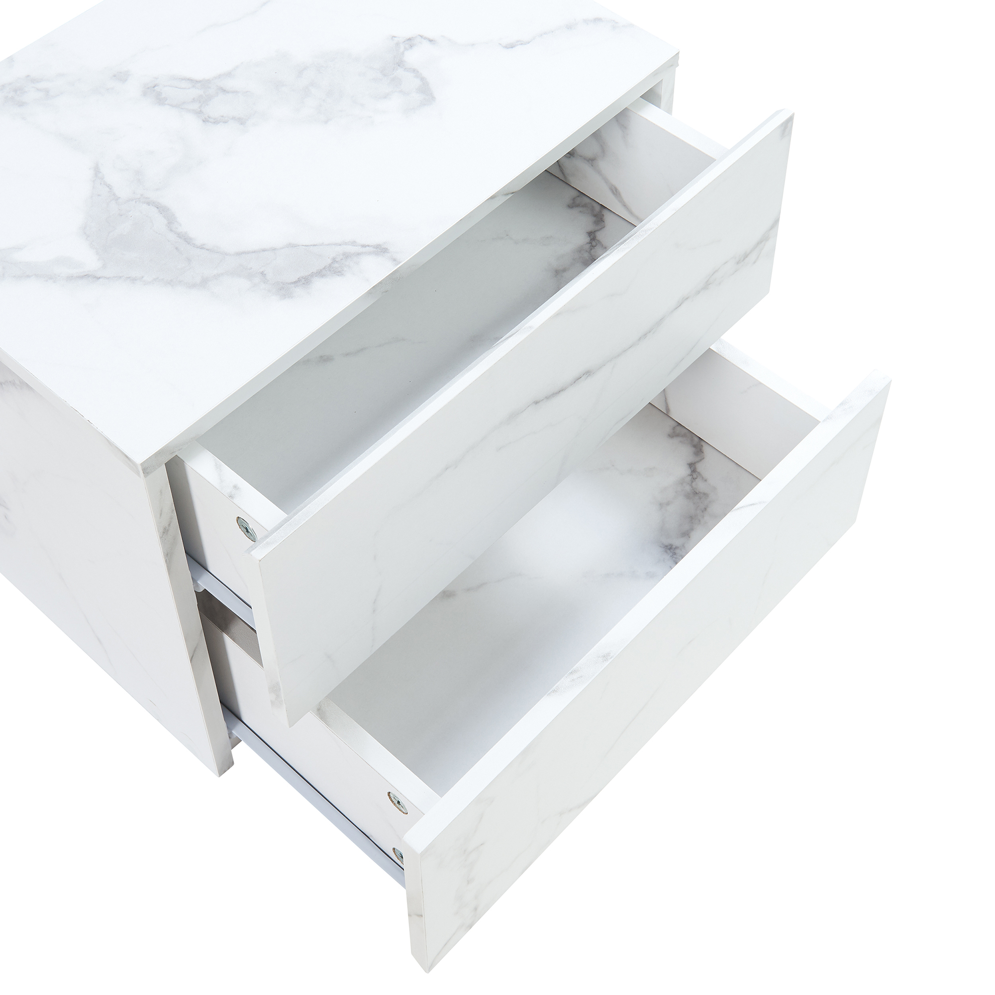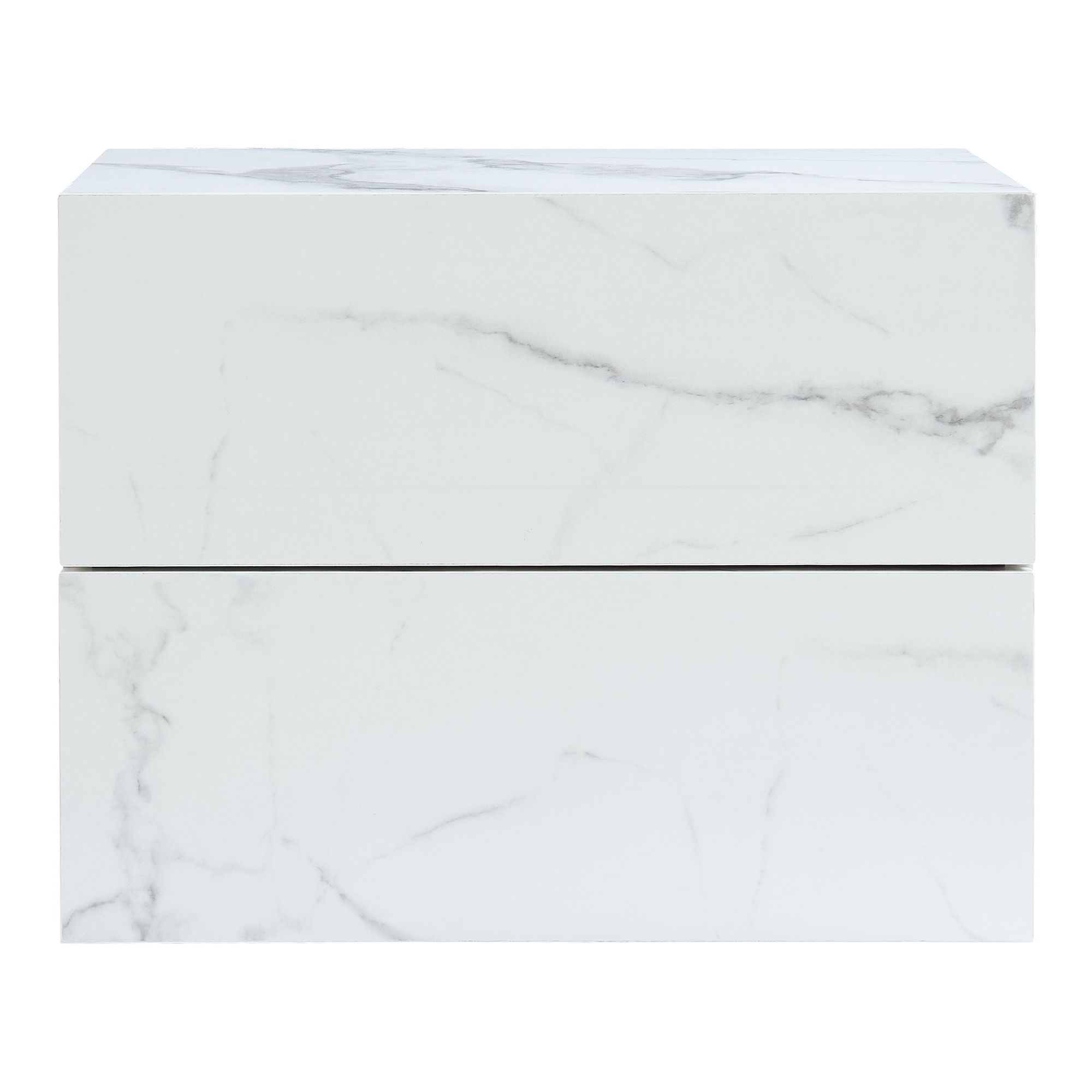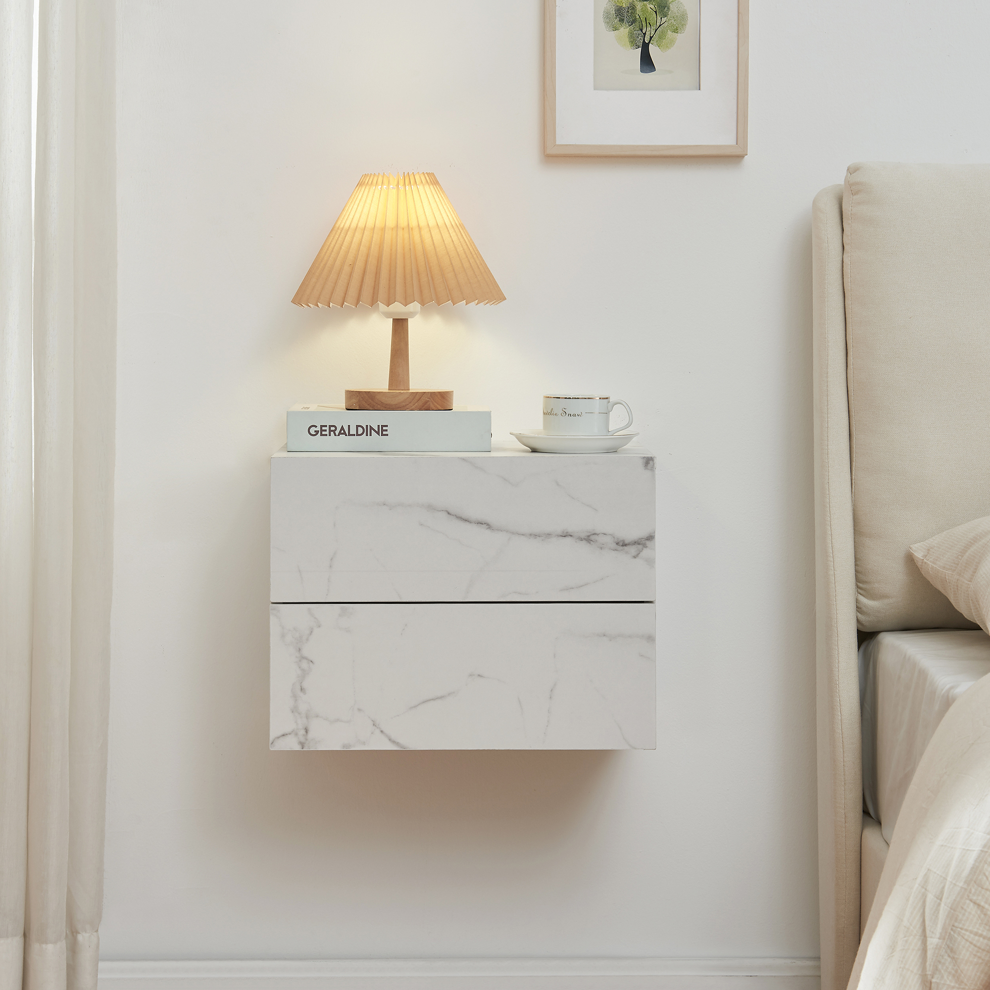 Noptieră suspendată Ampfing cu 2 sertare, aspect marmură albă