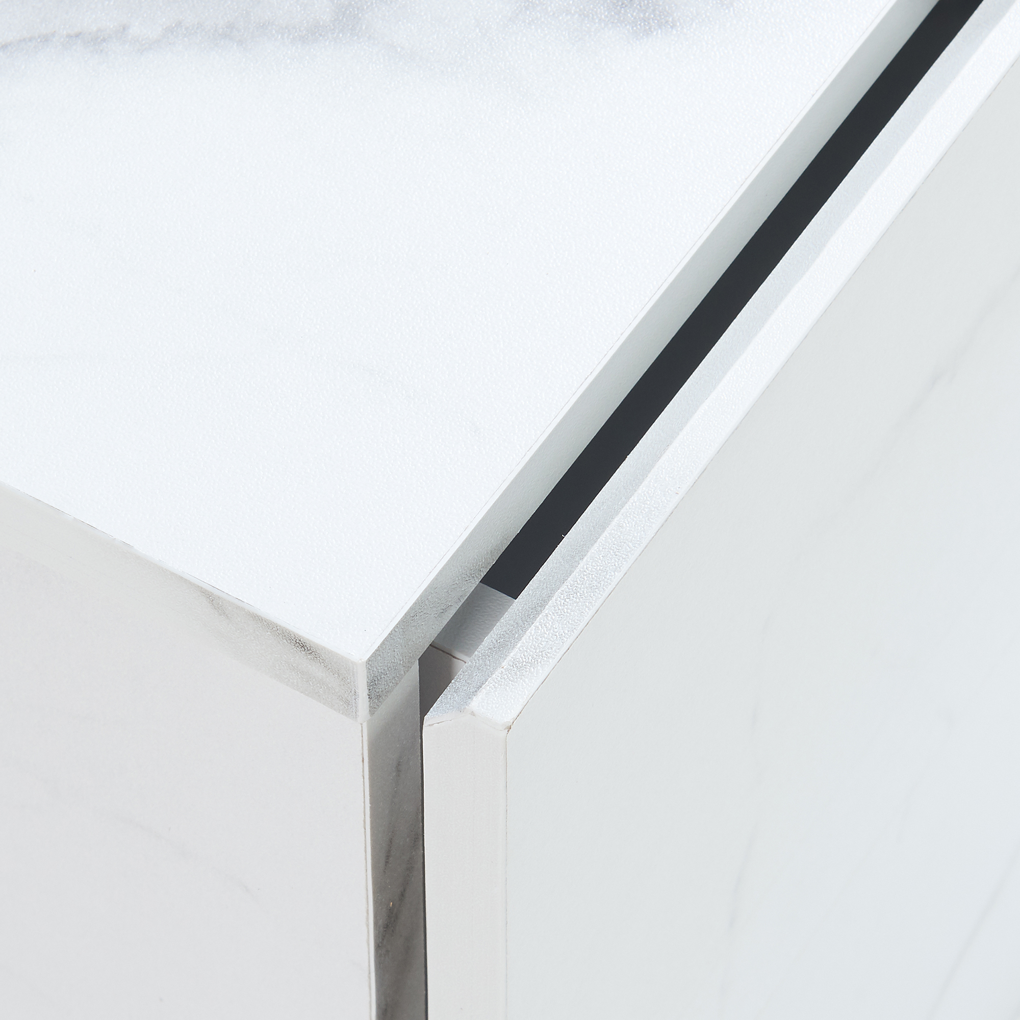 Această noptieră suspendată impresionează prin designul său modern, elegant și ușor de integrat în amenajări contemporane. Finisajul cu aspect de marmură albă oferă un plus de rafinament, iar forma compactă o face ideală pentru spații mici sau medii.