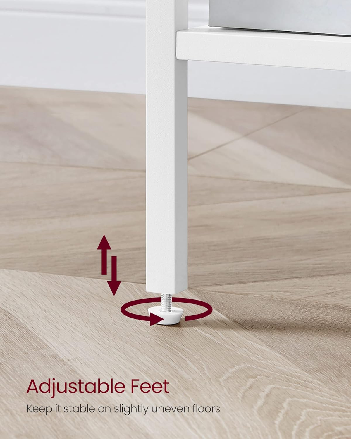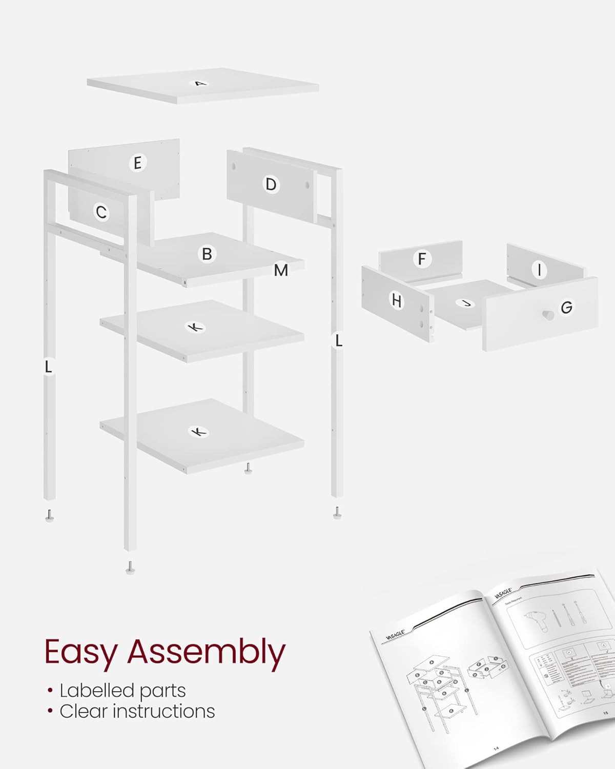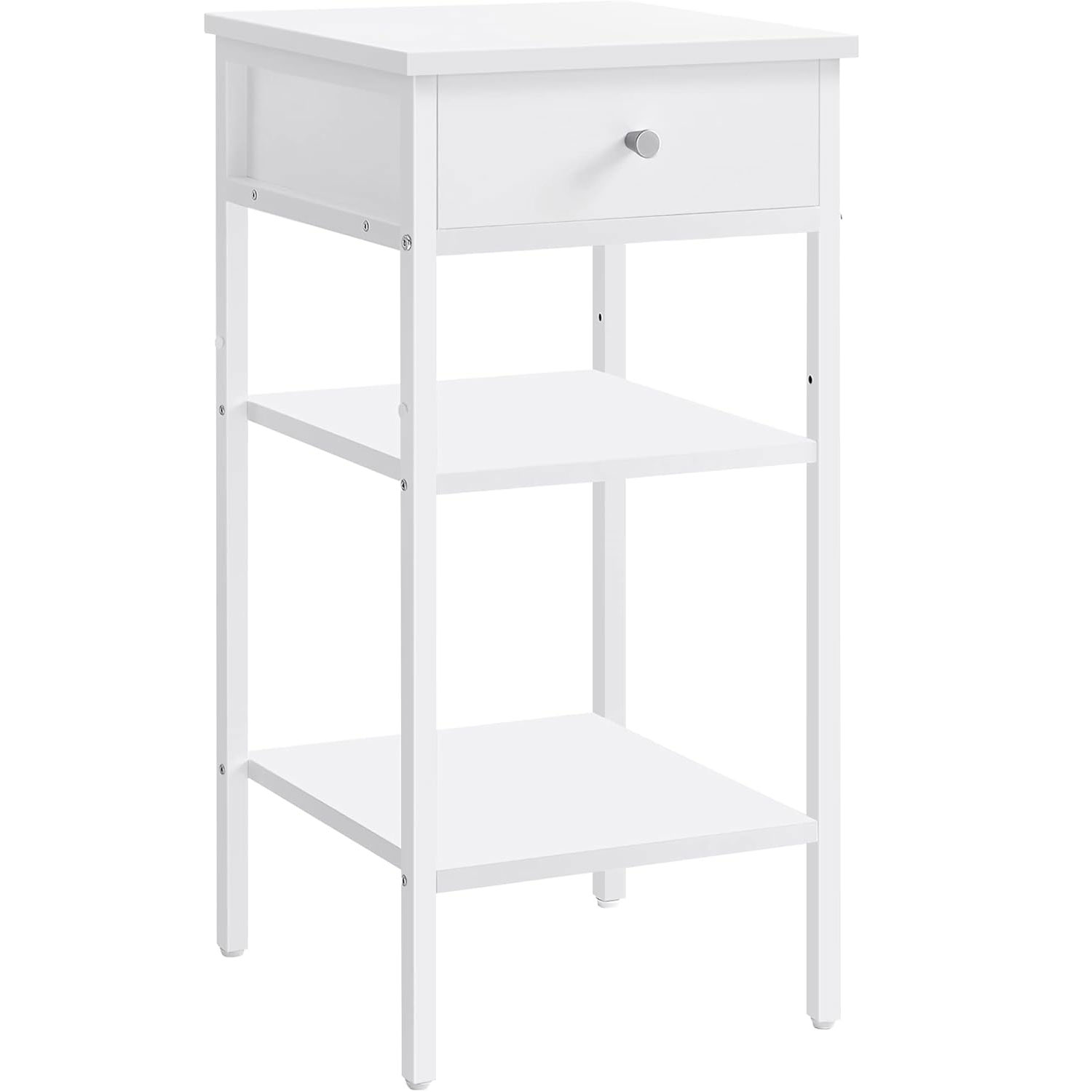 Noptieră VASAGLE albă cu sertar și 2 rafturi, design modern, 35x35x70 cm