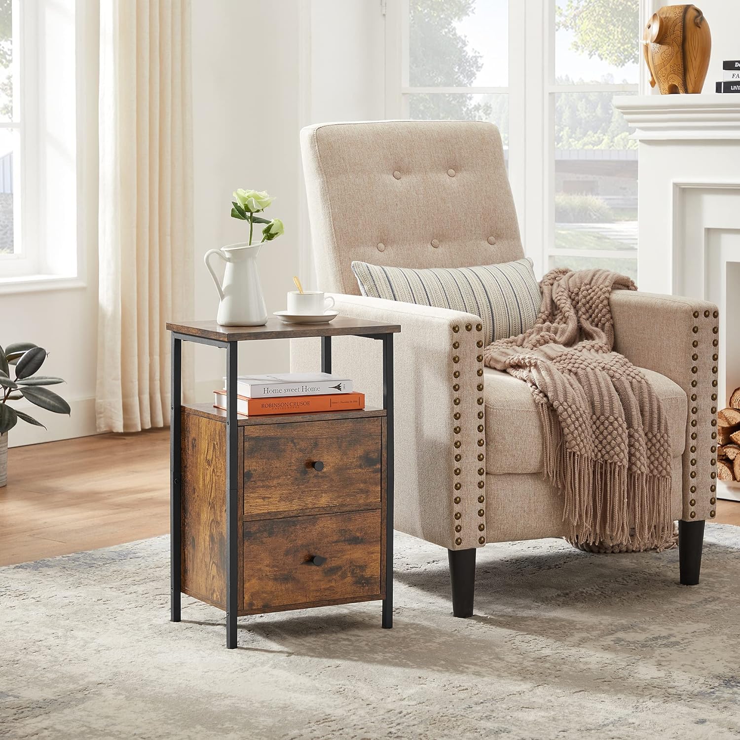 Noptieră VASAGLE cu 2 sertare și poliță, stil industrial, maro-negru