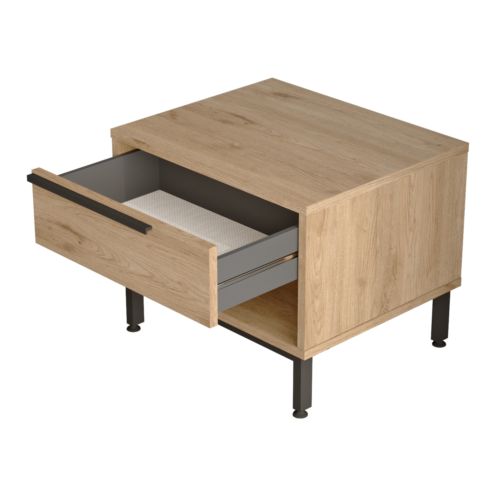Noptieră Vesanto cu sertar și raft, aspect stejar, 43x54x45 cm