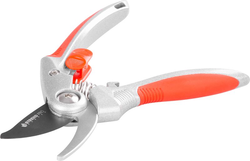 Záhradné nožnice Strend Pro sú ideálne na strihanie, prestrihávanie a tvarovanie kvetín a vetiev kríkov do priemeru 15 mm. Sú vyrobené z hliníka. Šedo-červená rukoväť je vybavená bezpečnostným zámkom proti otvoreniu čepele. Rozmer: 205 mm.