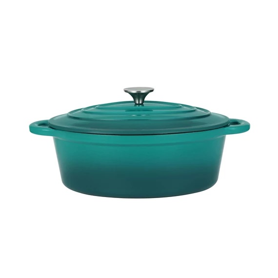 Transformă fiecare masă într-un răsfăț: această oală din fontă emailată de 30 cm distribuie căldura uniform și păstrează temperatura mult timp, pentru preparate fragede și aromate. Este excelentă pentru gătit rață, fripturi, tocănițe sau mâncăruri la cuptor, iar capacul ajută la păstrarea sucurilor naturale.
