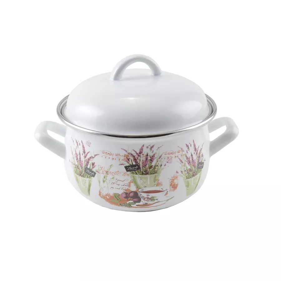 Oală emailată cu capac 16 cm, 1,8 L, model lavandă – Perfect Home