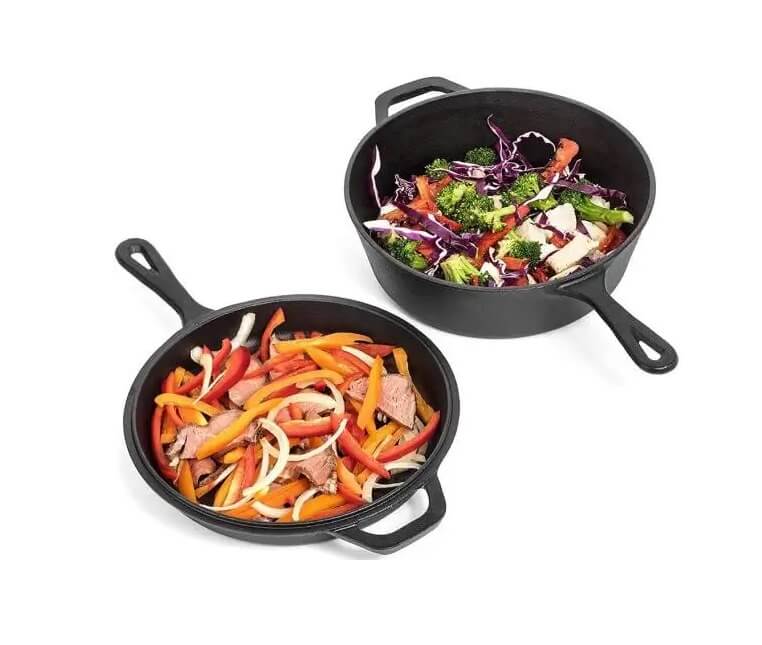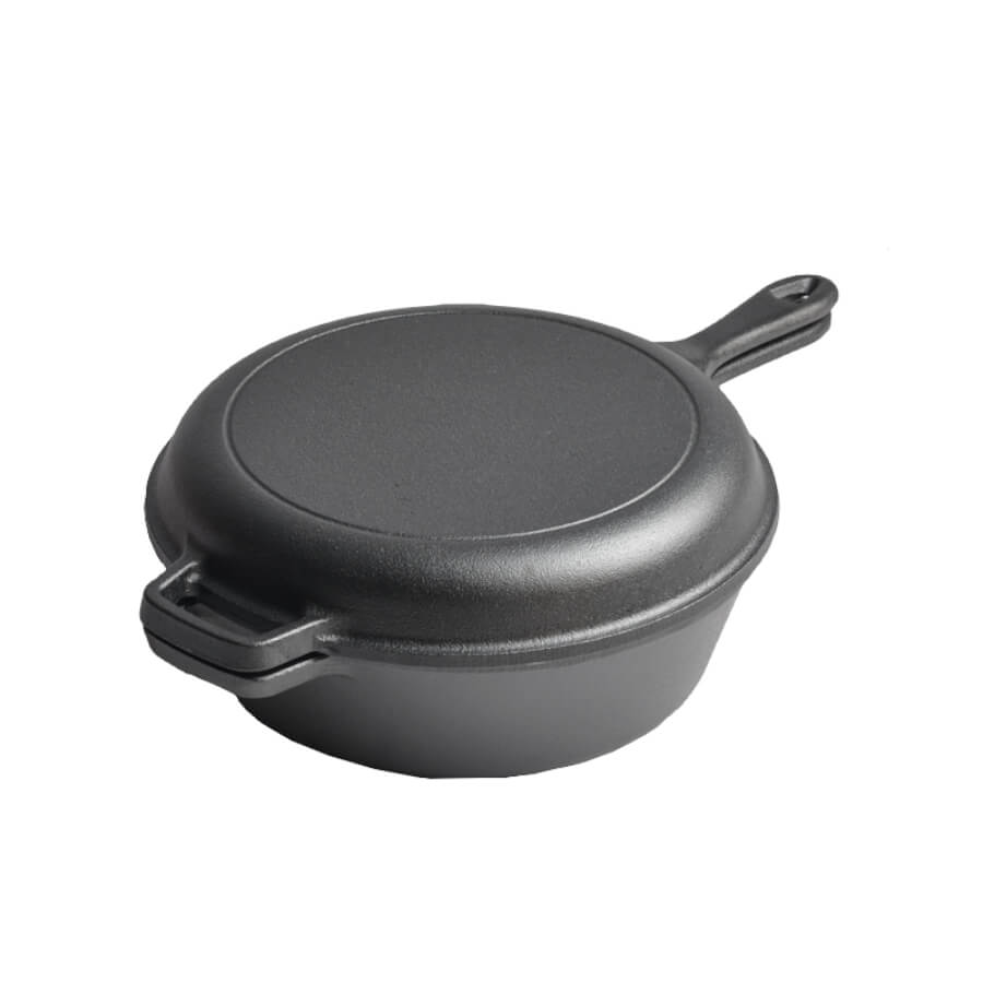 Descoperă o oală-tigaie din fontă practică, tip 2 în 1, perfectă pentru rețete gătite lent, rumenire uniformă și preparate la cuptor. Fonta păstrează excelent căldura, iar capacul îți permite să gătești suculent, cu mai puțin efort – ideală atât în bucătărie, cât și pentru gătit în aer liber.
