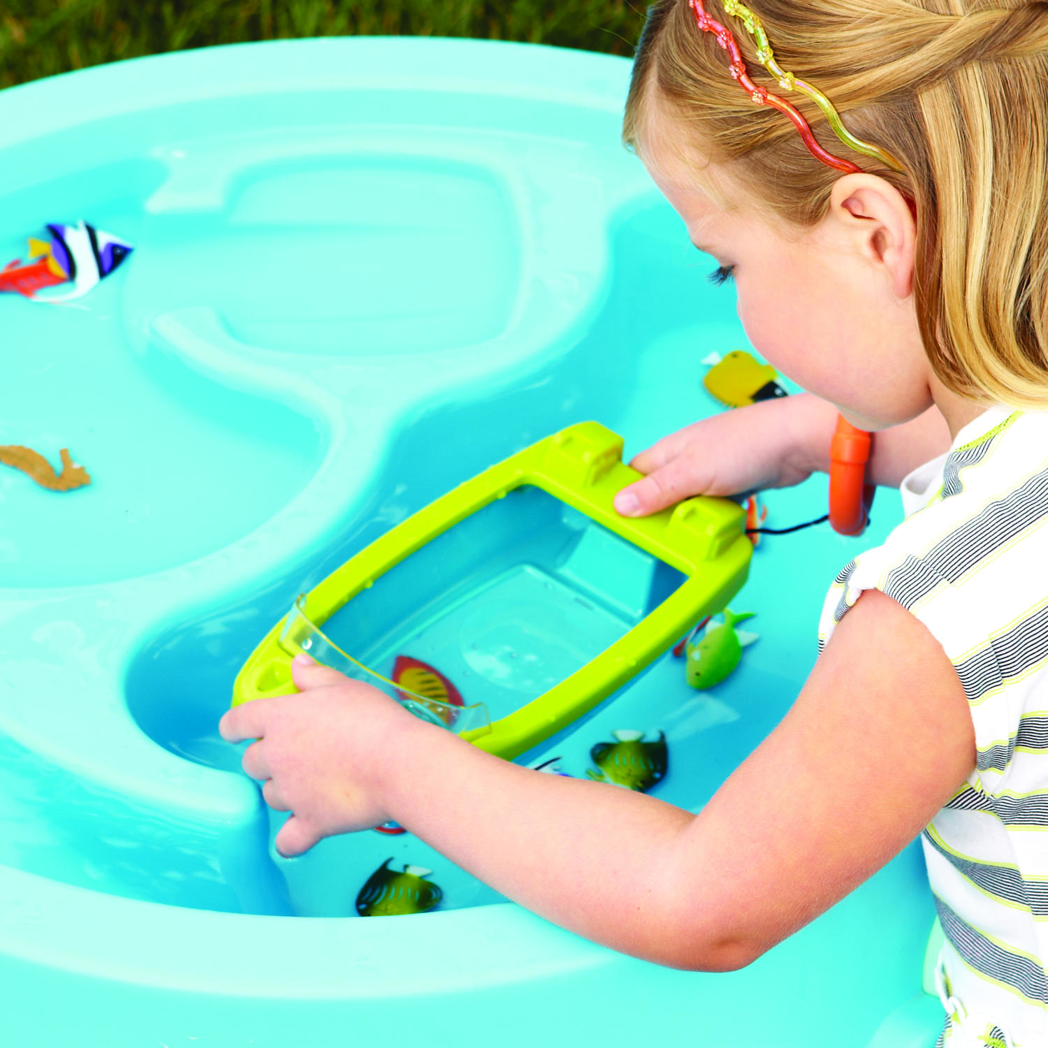 Usor de utilizat si atragator pentru cei mici, produsul stimuleaza simtul vizual, curiozitatea si dorinta de explorare. Copilul trebuie doar sa aseze barcuta pe apa si sa priveasca prin lentila pentru a descoperi detalii interesante din mediul acvatic.
