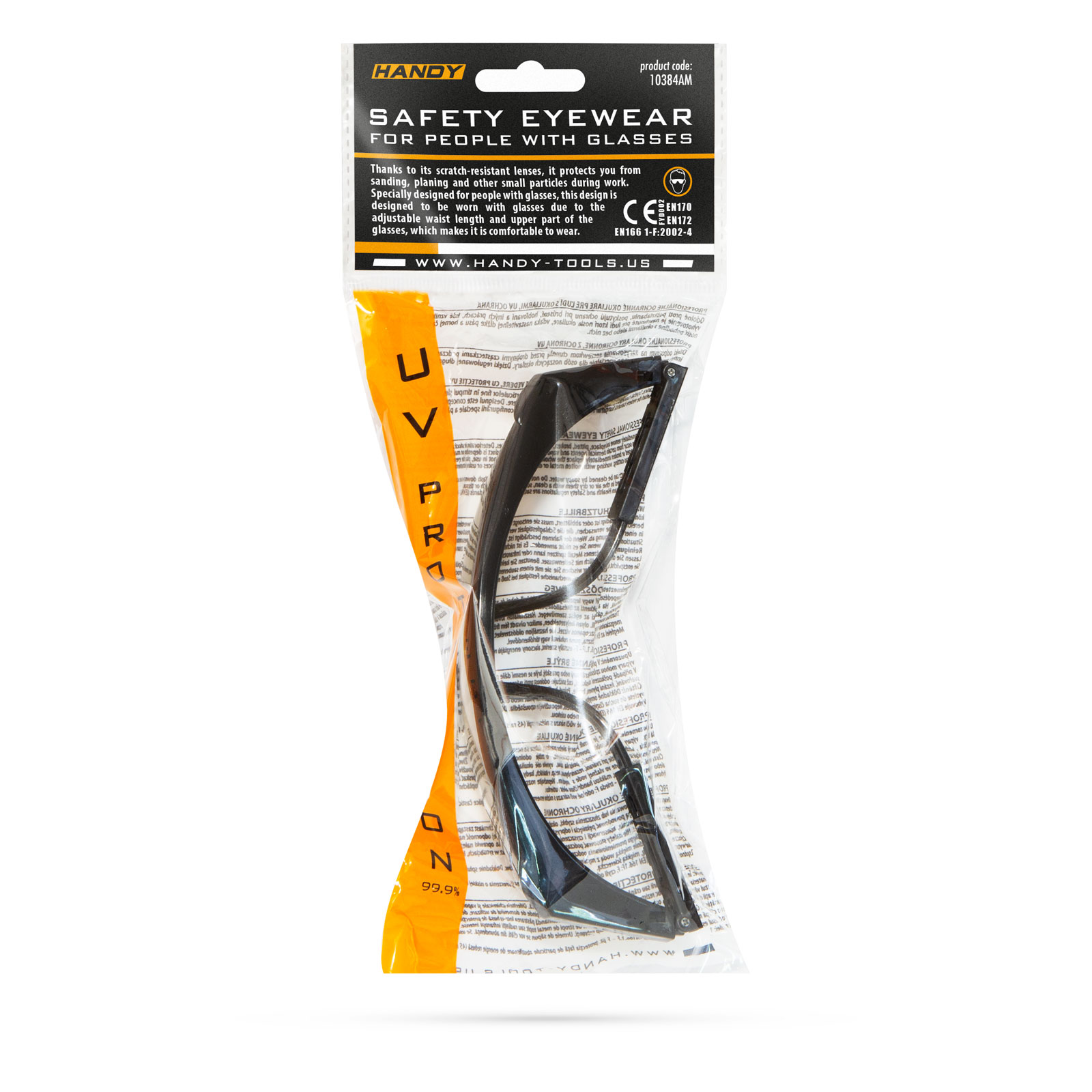 Datorita lentilelor anti-zgarieturi, asigura protectie impotriva particulelor fine in timpul slefuirii, debitarii si a altor lucrari mecanice. Special conceput pentru persoanele cu ochelari de vedere. Designul este conceput pentru a fi purtat cu sau fara ochelari de vedere datorita lungimii reglabile a tijelor laterale si a configurarii speciale a partii superioare a ochelarilor.