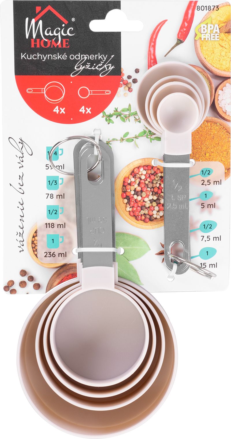 Odmerka MagicHome, lyžicové a hrnčekové, kuchynská, sada 8 ks, 2,5 ml - 236 ml