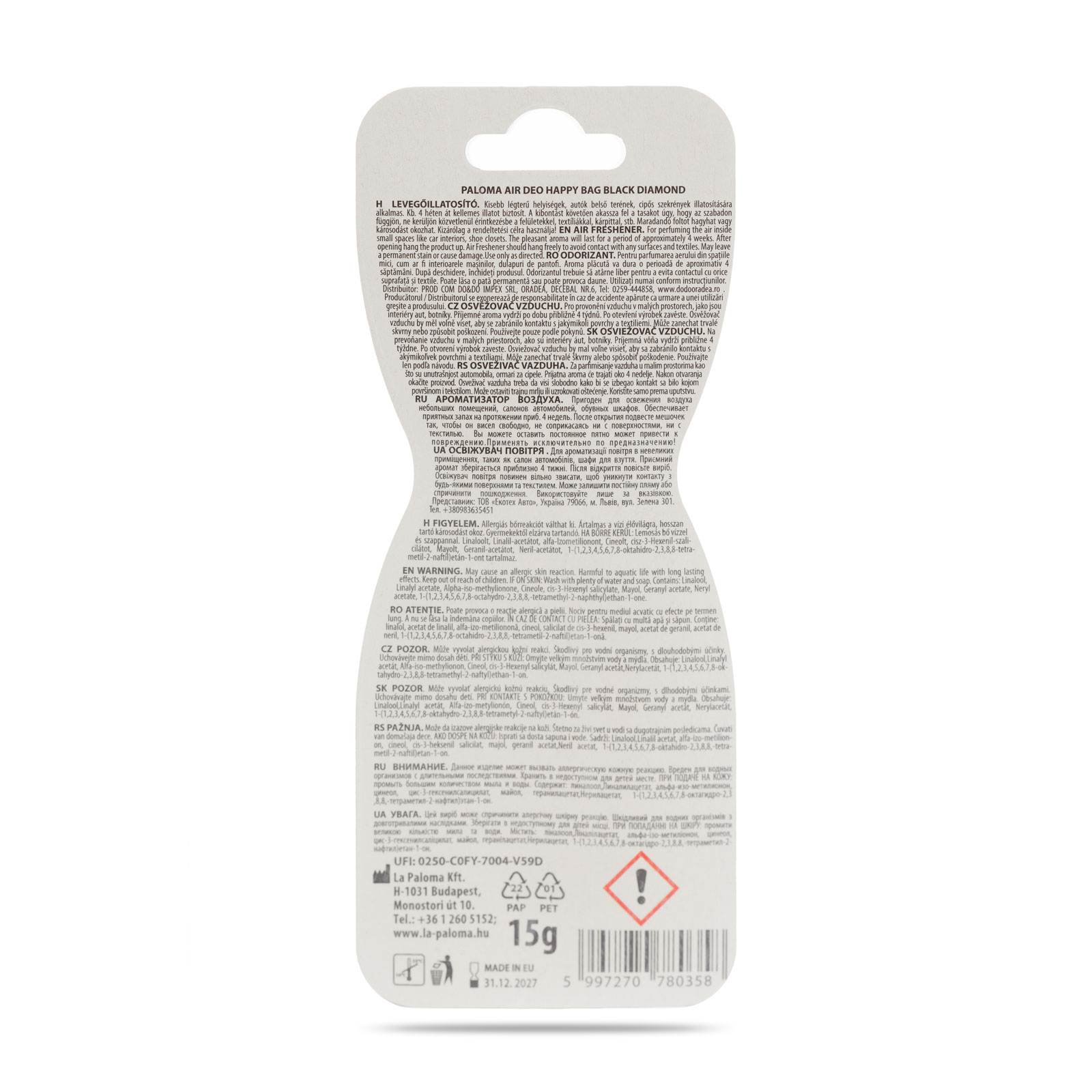 Odorizant auto Paloma Happy Bag Black Diamond cu bile parfumate, 4 săptămâni