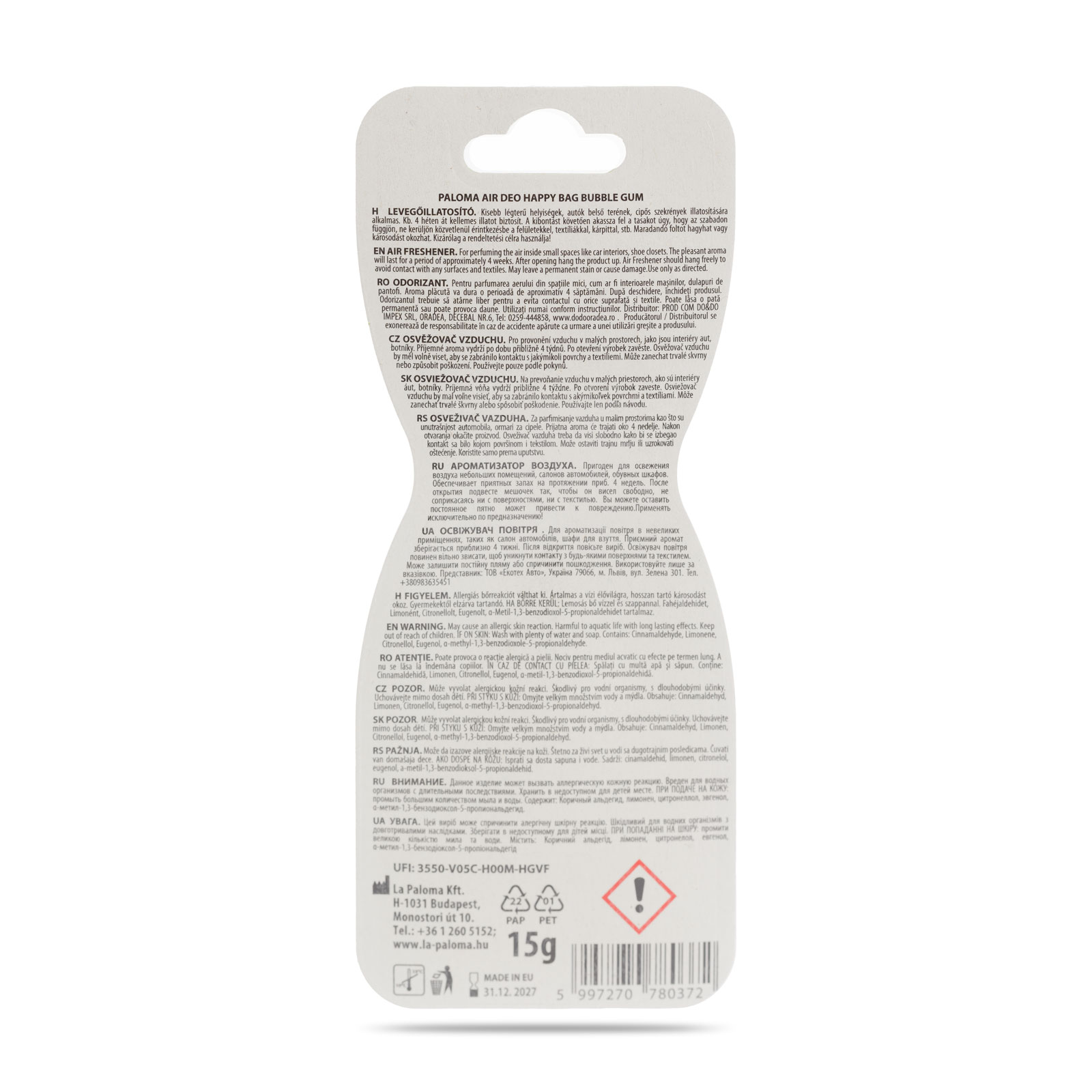 Specificatii Odorizant auto Paloma Happy Bag Bubble