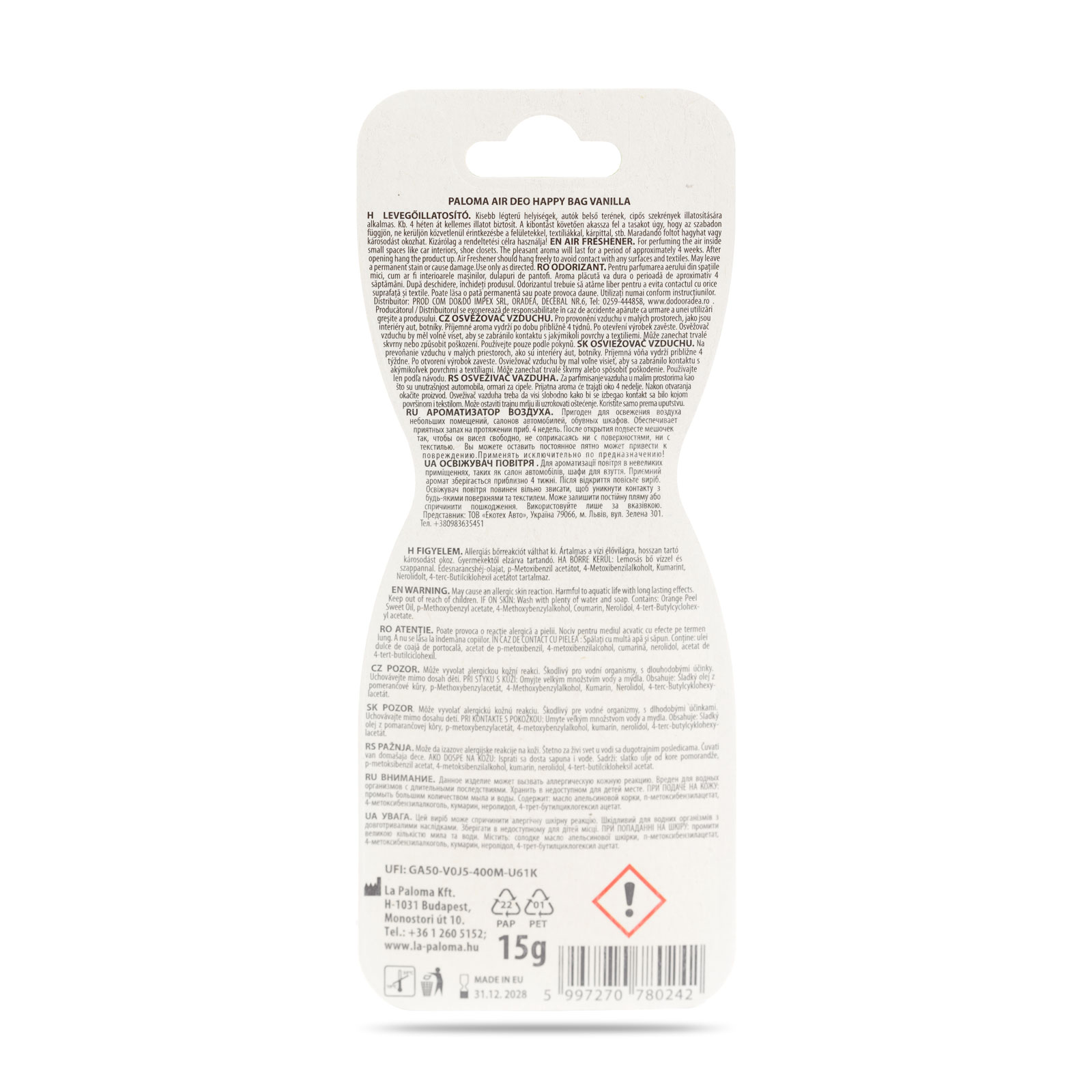 Specificatii Odorizant auto Paloma Happy Bag Vanilie,