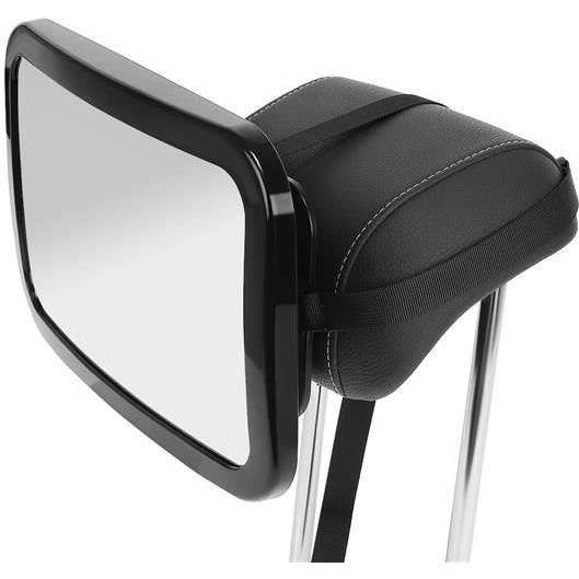 - 4 BRETELE - comparativ cu concurenta, MODELUL NOSTRU are 4 chingi fixate vertical si orizontal, care tin ferm tetiera si nu se vor desface; nu exista nici o posibilitate ca oglinda sa alunece si sa cada peste copil! Curelele sunt prinse cu catarame si, in plus, pot fi reglate, datorita carora se vor adapta oricarui model de tetiera, indiferent de marca si dimensiunea masinii. Baza, care este montata pe tetiera, are o suprafata anti-alunecare, care impiedica suplimentar miscarea oglinzii.