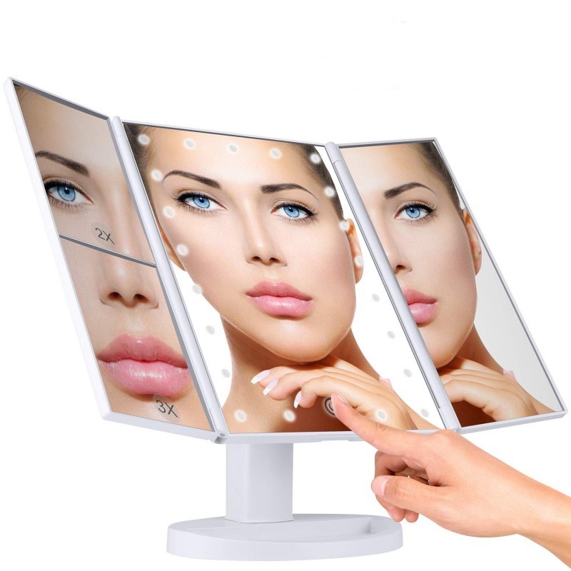 Oglindă cosmetică extensibilă cu 22 LED-uri, zoom 2x/3x, touch, USB, alb