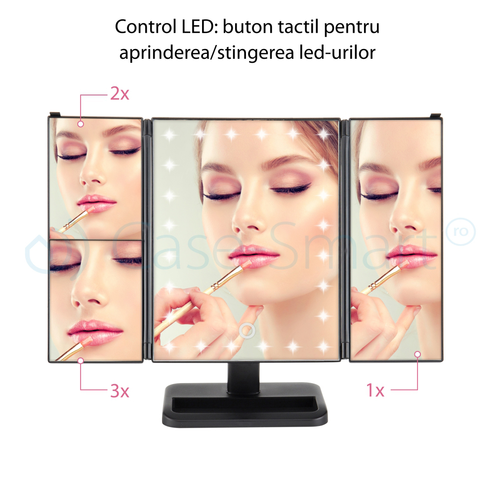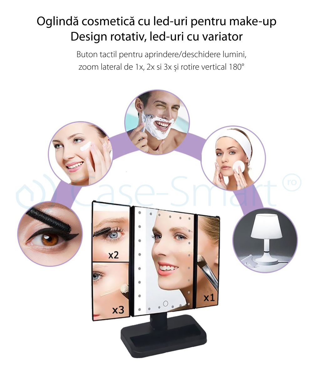 Oglinda cosmetica rotativa RedSun, Led-uri cu variator pentru make-up SmartElectro IntelligentHouse