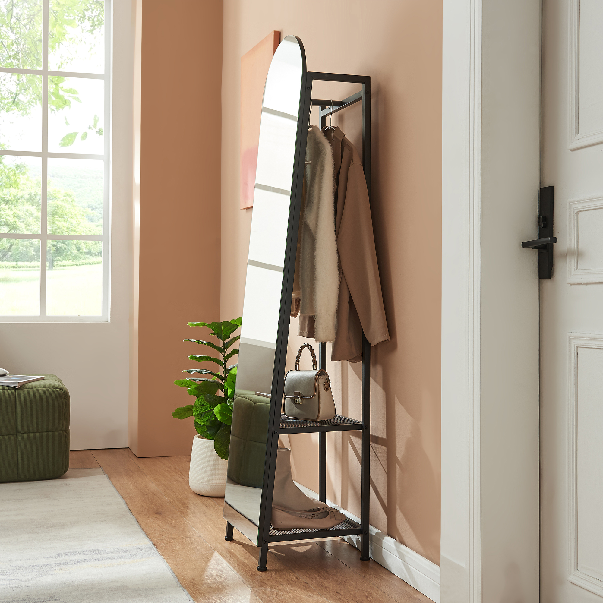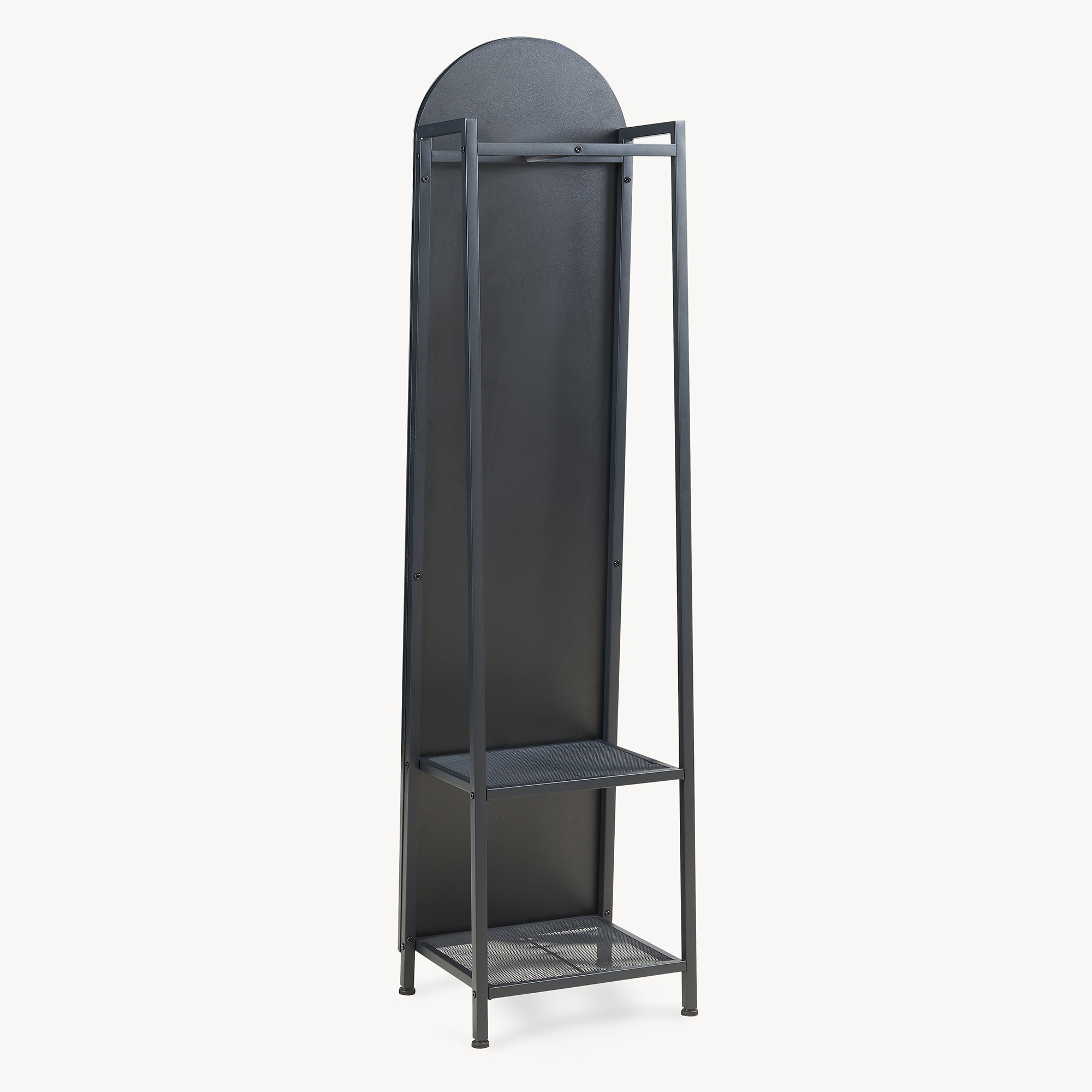 Oglindă cuier 2 în 1 Frenraby, cu rafturi și bară haine, 165x40x35 cm, negru