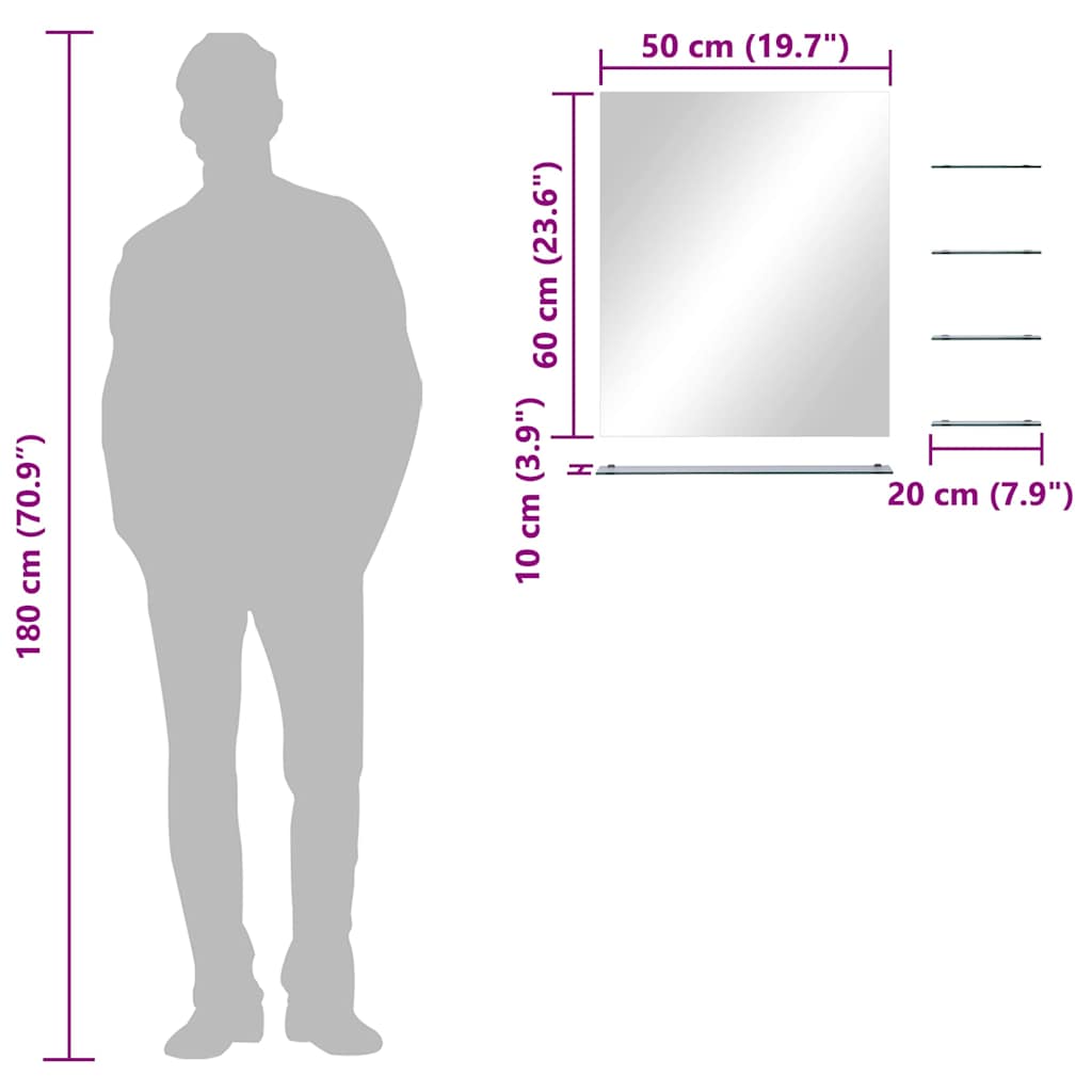 Oglindă de perete cu 5 rafturi, argintiu, 50 x 60 cm GartenMobel Dekor