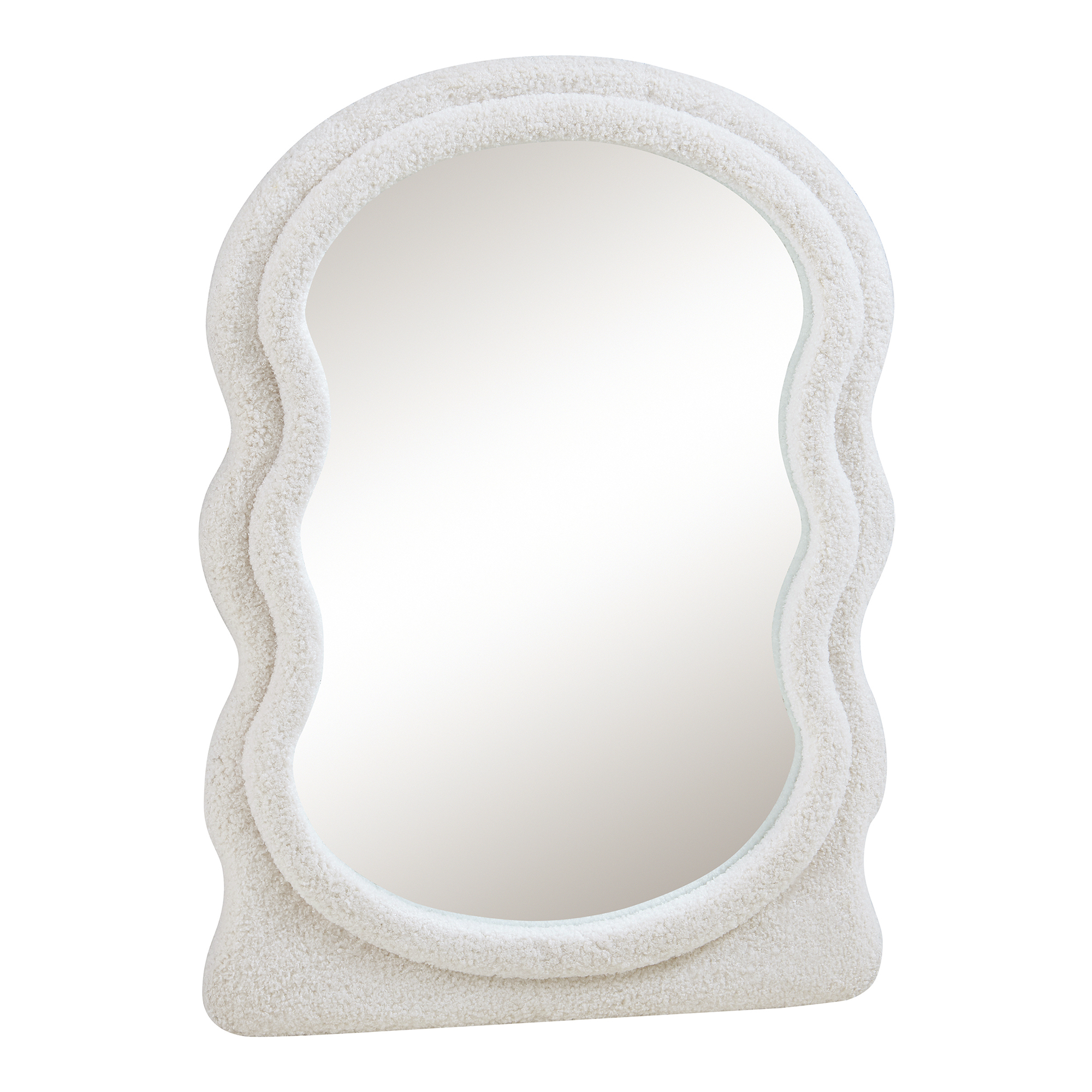 Adaugă un plus de stil și confort vizual locuinței tale cu această oglindă de perete cu design decorativ, ideală pentru amenajări moderne, scandinave sau minimaliste. Rama sa cu formă curbată și finisaj din stofă teddy oferă un aspect cald, elegant și prietenos, transformând oglinda într-un accent decorativ deosebit pentru orice încăpere.