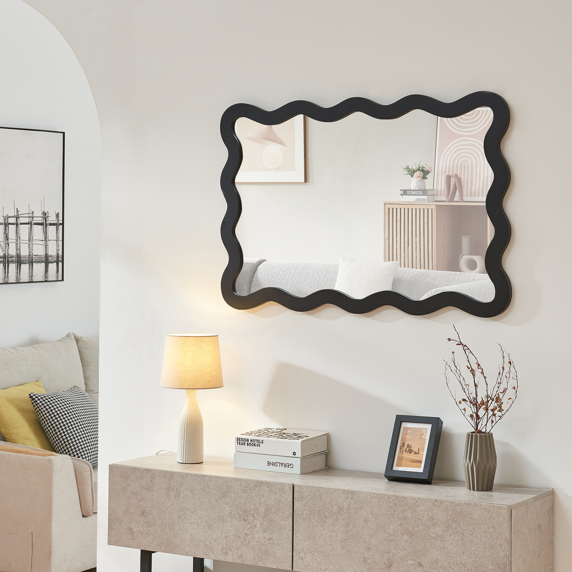 - Design modern cu ramă în formă de valuri, potrivit pentru interioare elegante
