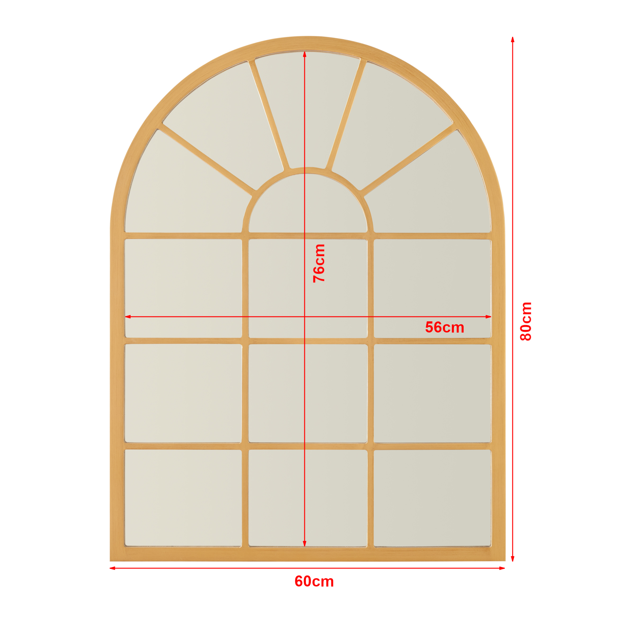 Oglindă de perete Villalago aurie, design arcadă, 80 x 60 cm