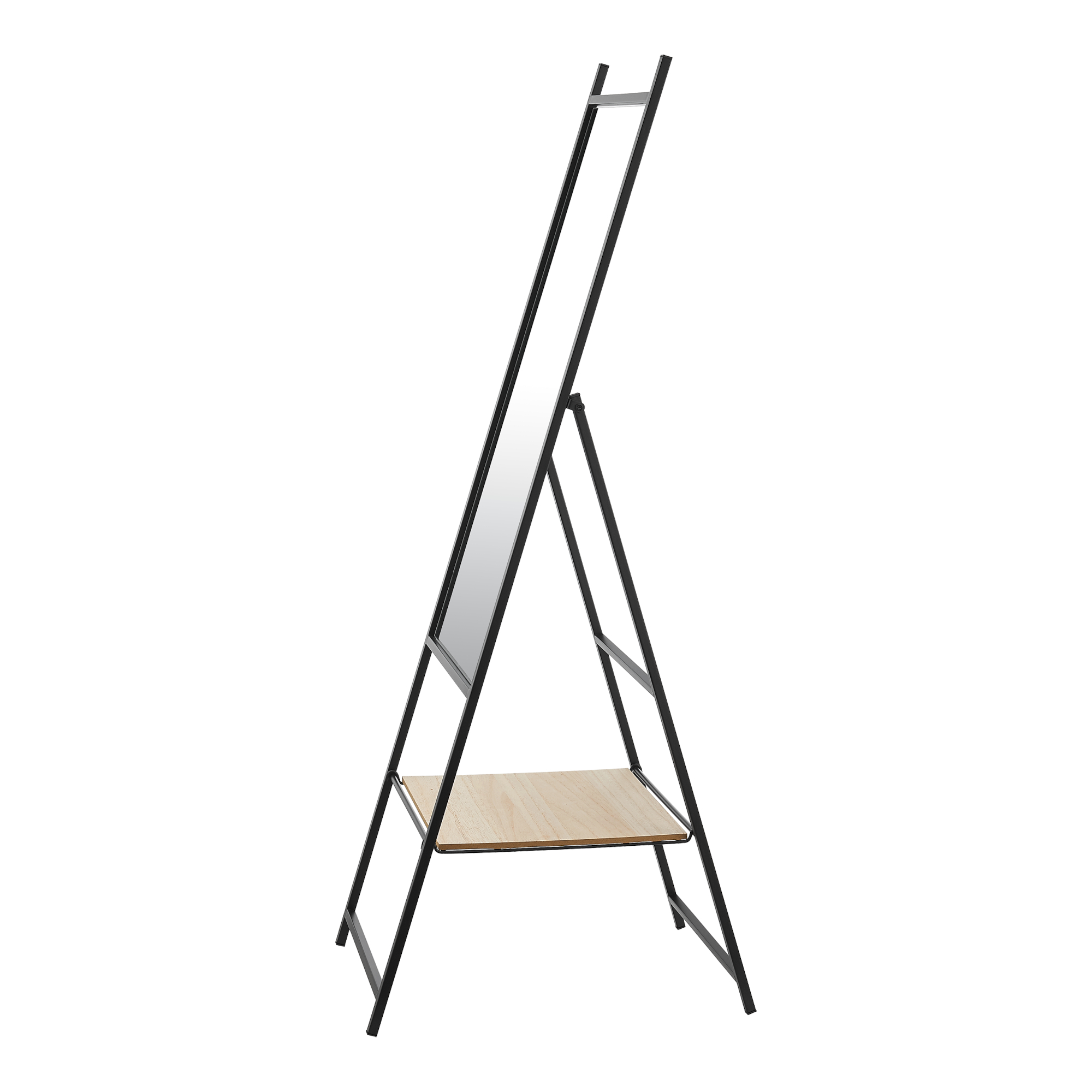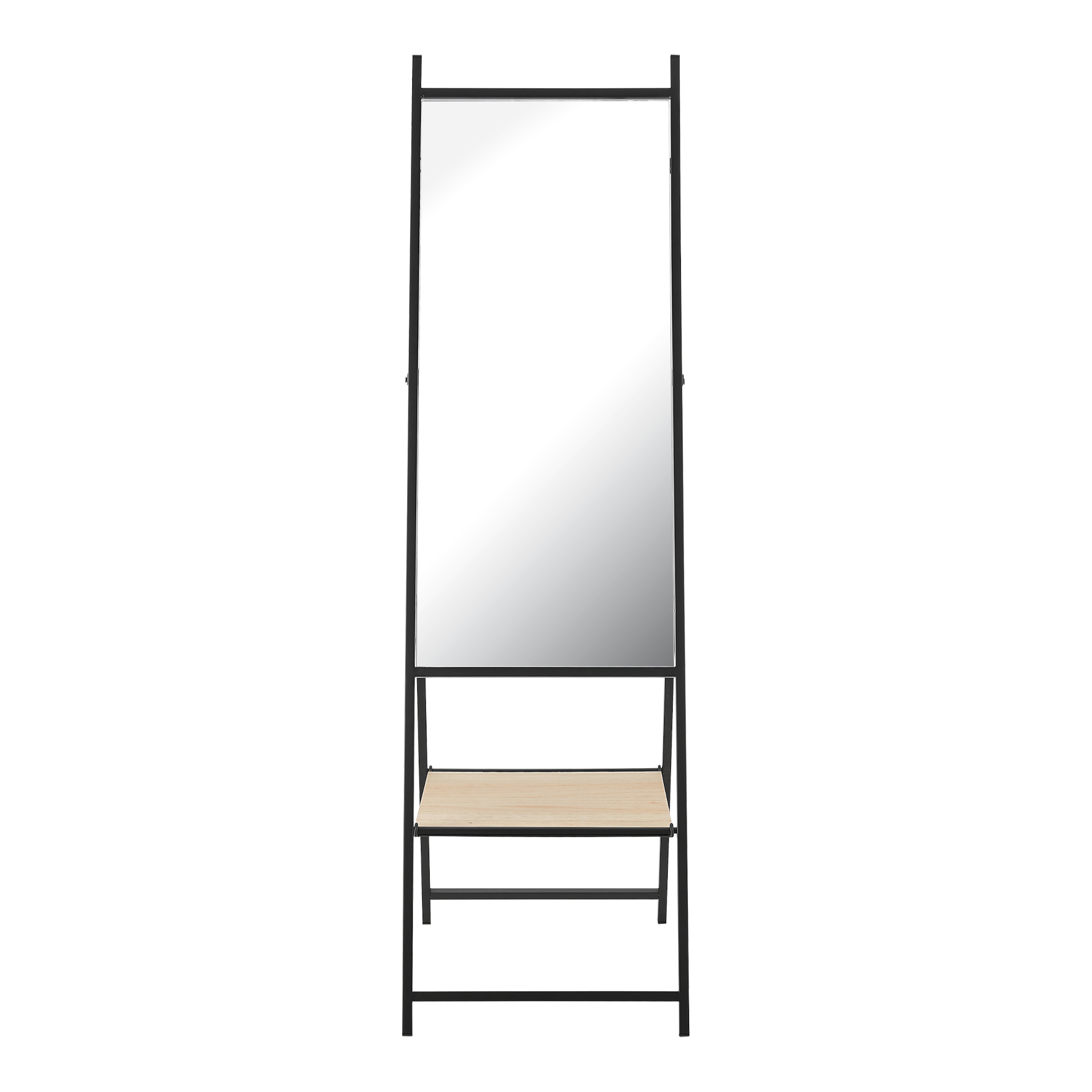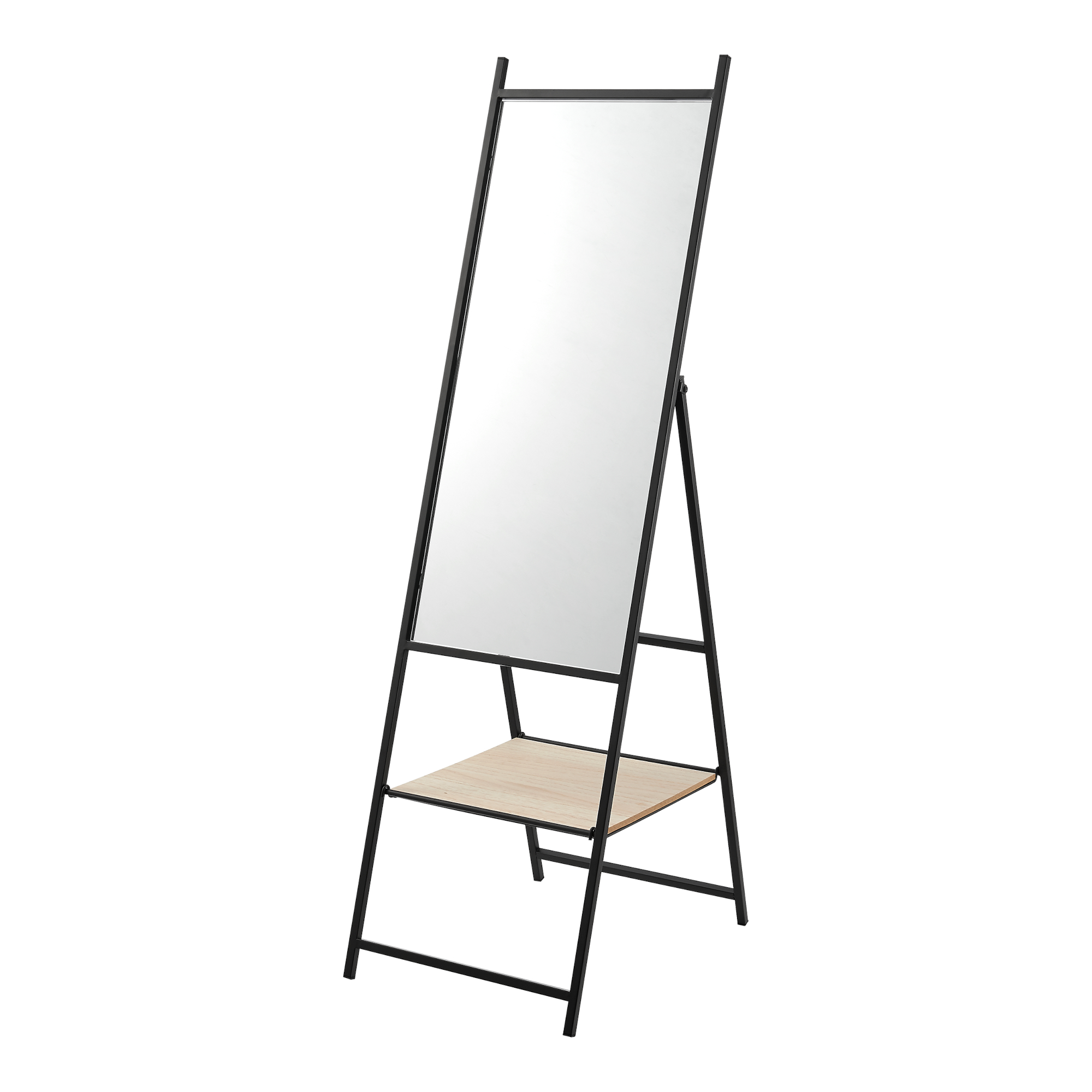 Oglindă de podea Chamois cu raft, negru și aspect stejar, 150 cm