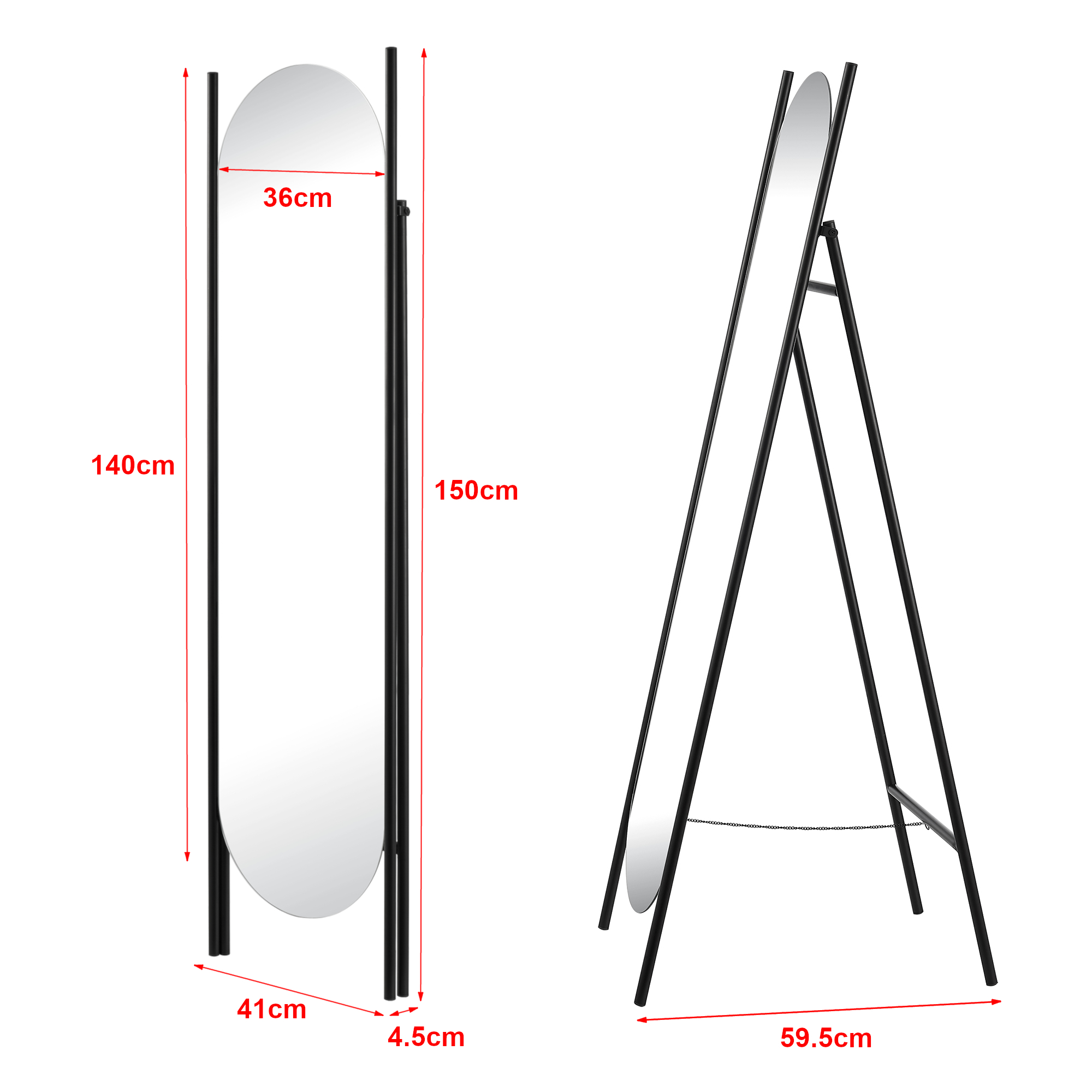 Oglindă de podea Fardella cu suport reglabil, neagră, 150 cm