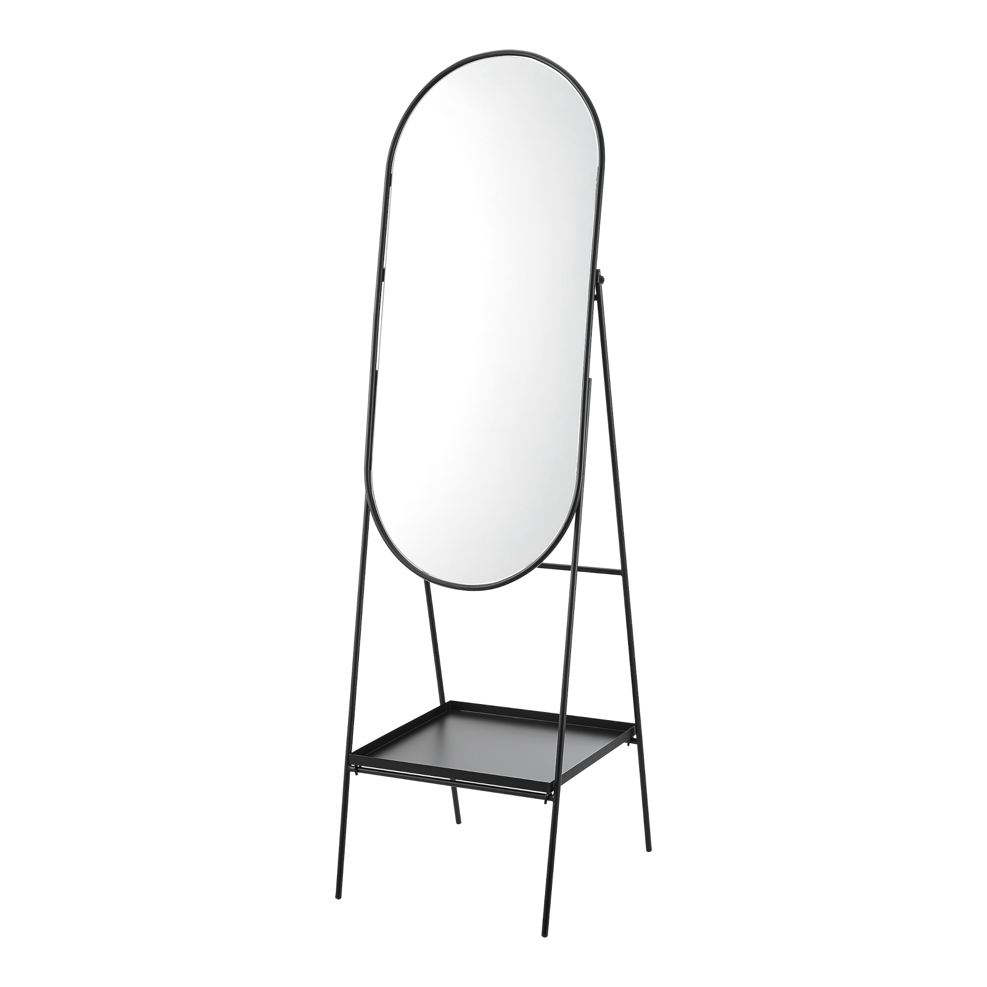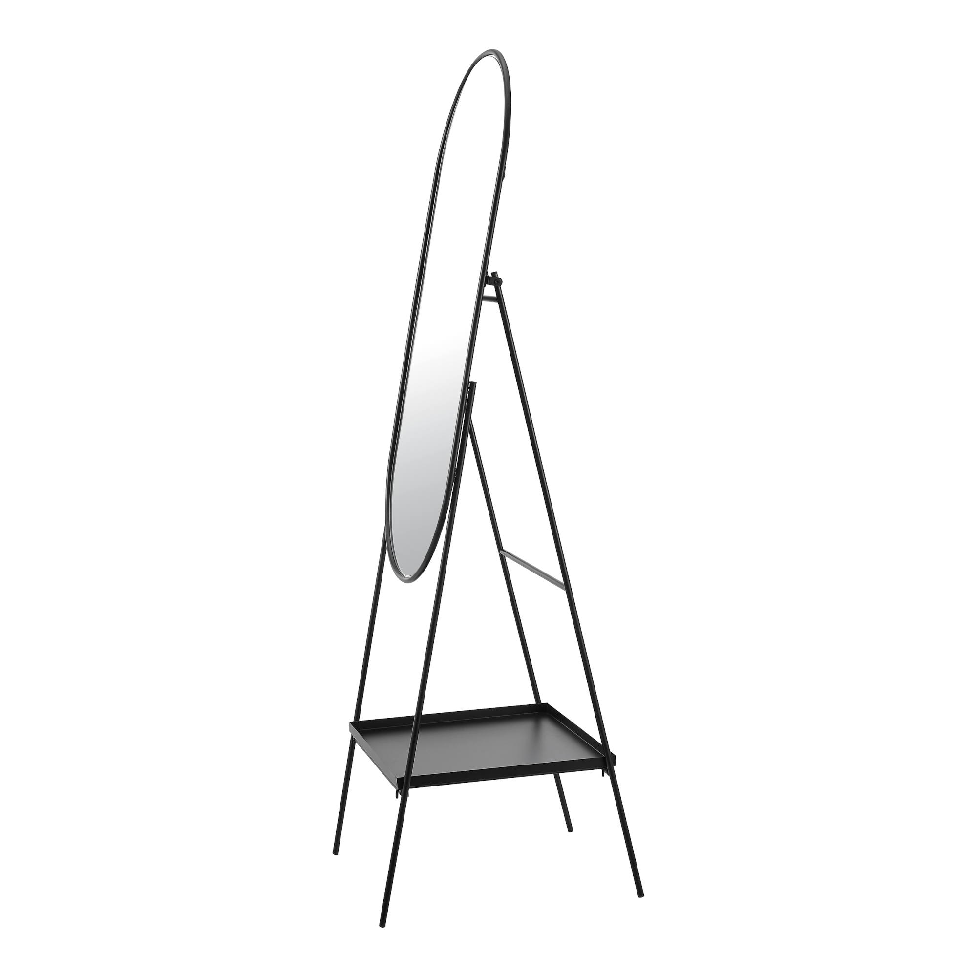 Oglindă de podea Perano cu poliță, metal negru, 160 x 46 cm