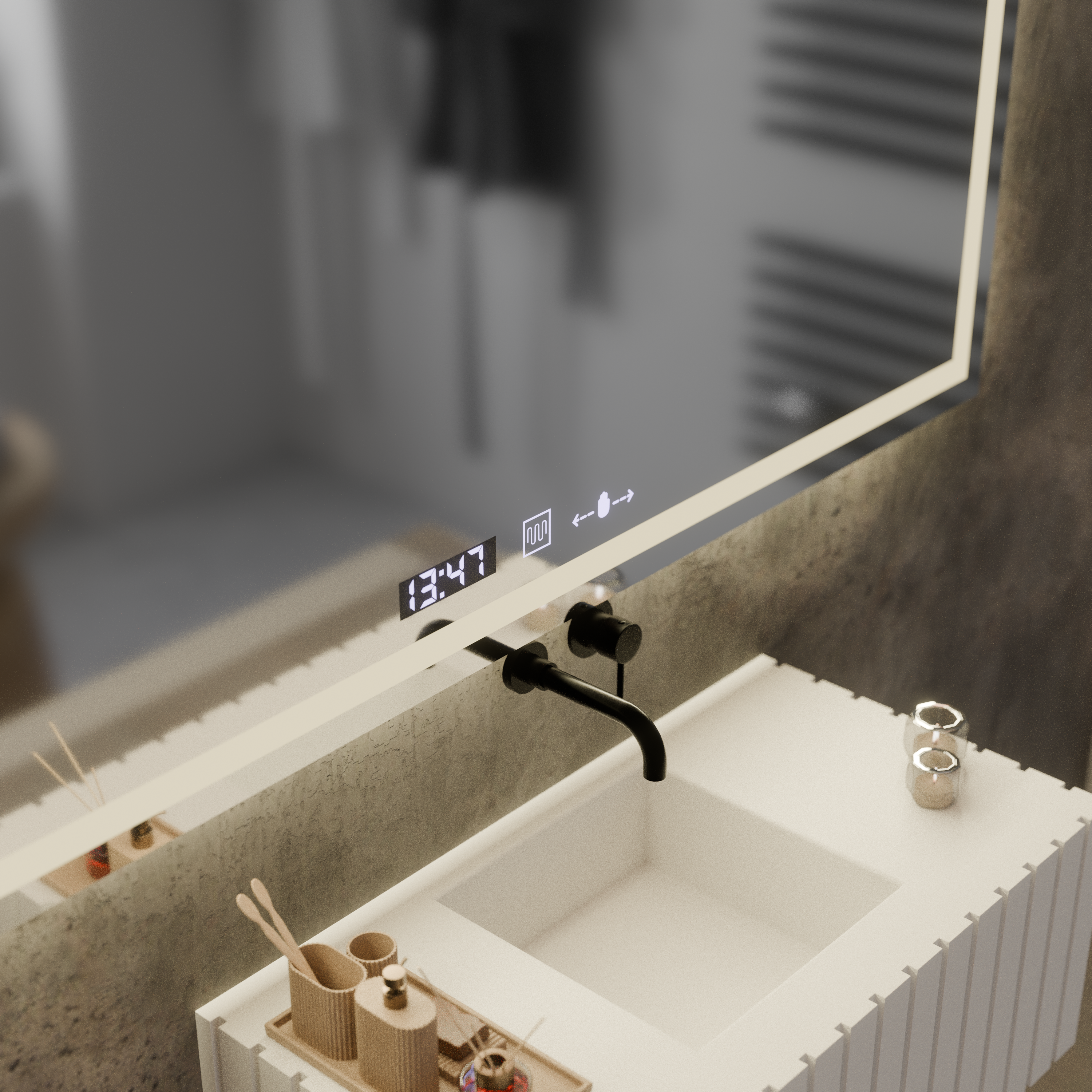 - Activează dezaburirea pentru o oglindă clară imediat după duș.