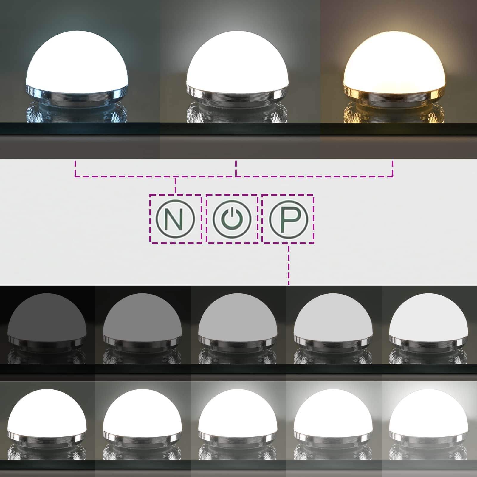 - 3 moduri de lumină LED colorată: Lumină rece, lumină naturală, lumină caldă