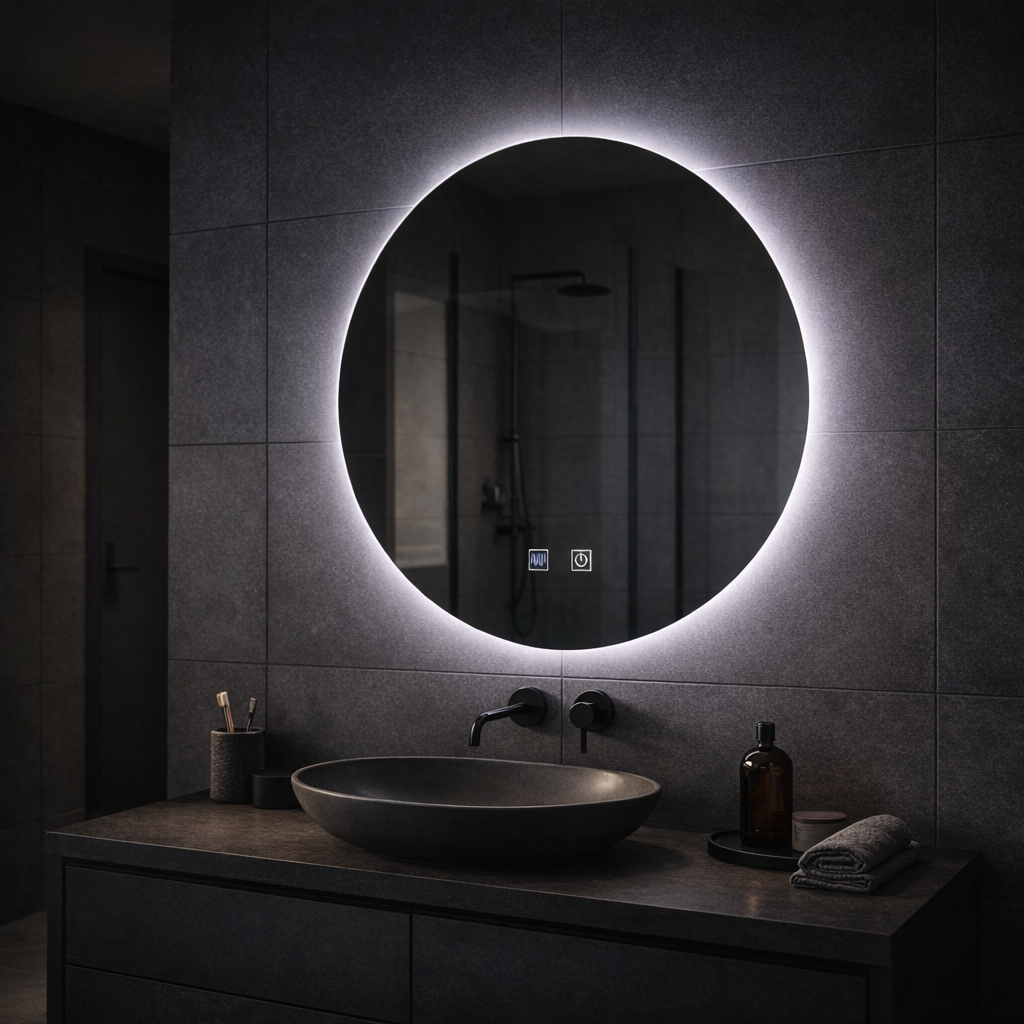 Transformă baia într-un spațiu modern cu oglinda LED rotundă 70 cm Isolda, cu iluminare elegantă pe contur. Controlul touch îți oferă pornire rapidă și reglaj de intensitate, iar funcția de dezaburire menține oglinda clară imediat după duș.