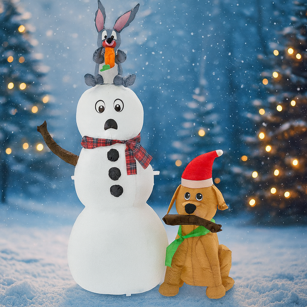 Om de zapada de exterior gonflabil, iluminare LED, cu catel si iepuras, cu compresor integrat, 180x80x60 cm, alb Household NewTrend