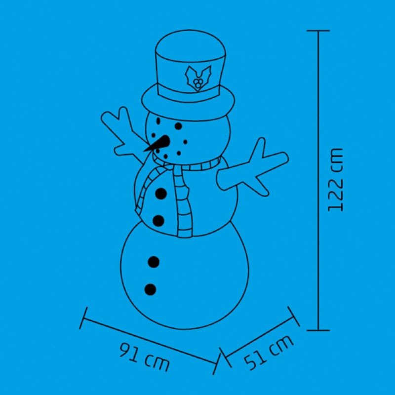 Adaugă instant atmosfera de sărbătoare cu acest om de zăpadă gonflabil de 122 cm, ideal ca decorațiune de Crăciun pentru curte, grădină, terasă sau living. Se umflă rapid cu ventilatorul încorporat și rămâne umflat cât timp este conectat la priză. Cele 2 lumini LED cu lumină albă îl fac vizibil și seara, pentru un efect festiv plăcut.