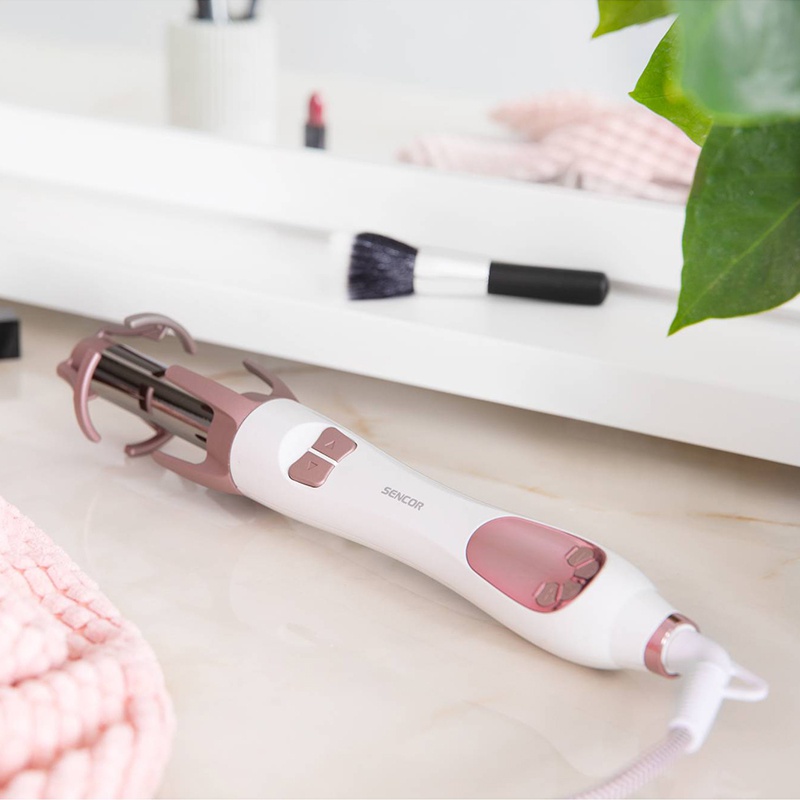 Obține bucle frumoase fără efort cu ondulatorul automat Sencor, creat pentru rezultate constante și un styling rapid. Cilindrul cu înveliș din titan alunecă ușor pe șuvițe, distribuie uniform căldura și ajută la un aspect mai strălucitor al părului.