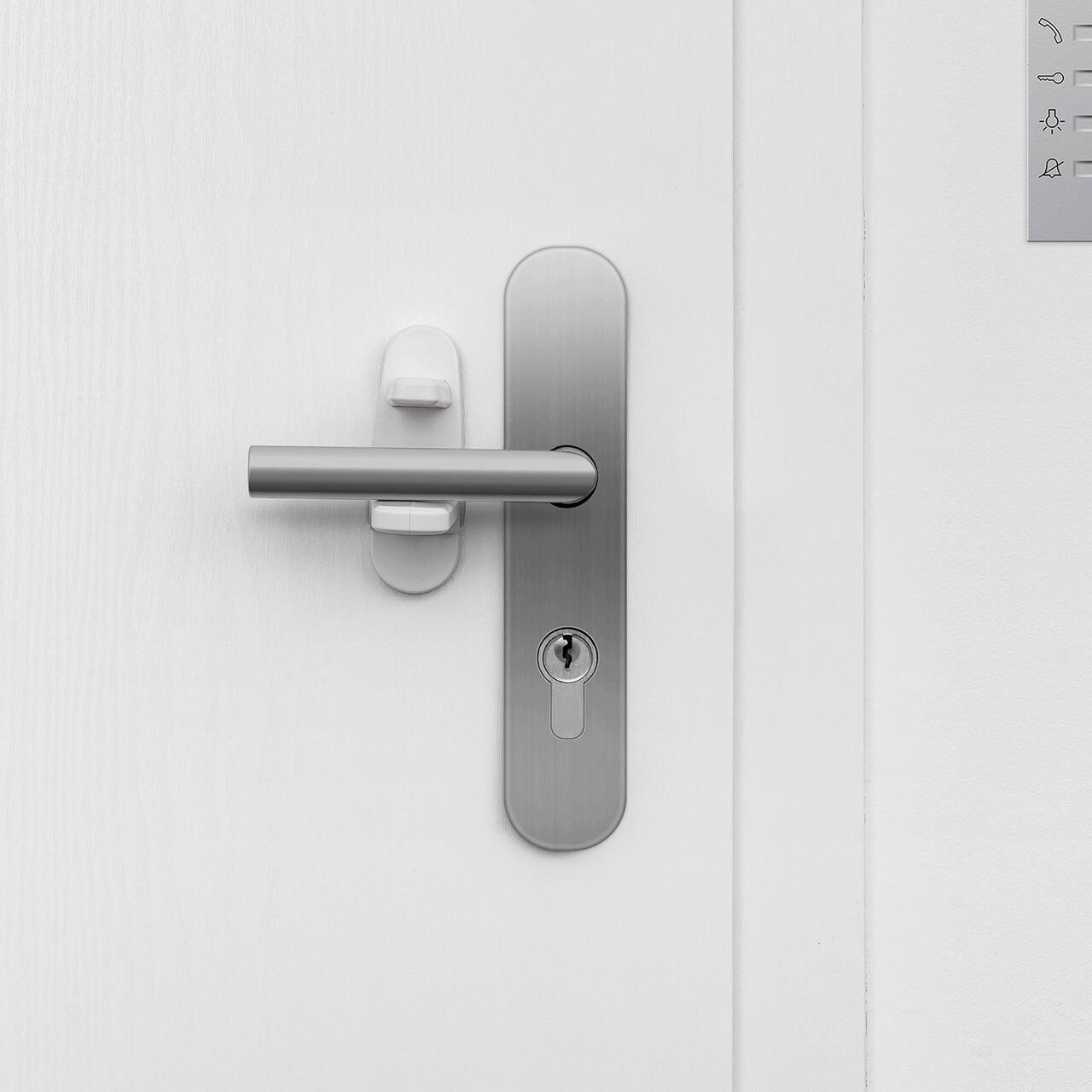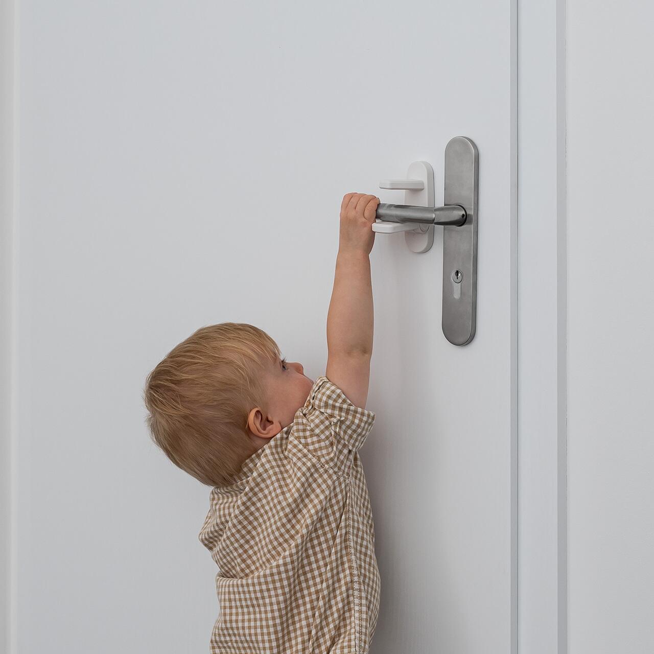 Pe masura ce copiii devin mai independenti, fac primii pasi si incep sa se ridice pe obiecte, ei sunt atrasi si de usi. Acest lucru poate deveni rapid o noua sursa de pericol, deoarece manerele usilor sunt la o inaltime apropiata si usor accesibile, chiar si de cei mai mici copii. Cu ajutorul opritorului nostru pentru manerul usii, puteti impiedica copiii sa deschida usa de la intrare, impiedicandu-i astfel sa paraseasca apartamentul sau casa neobservati.