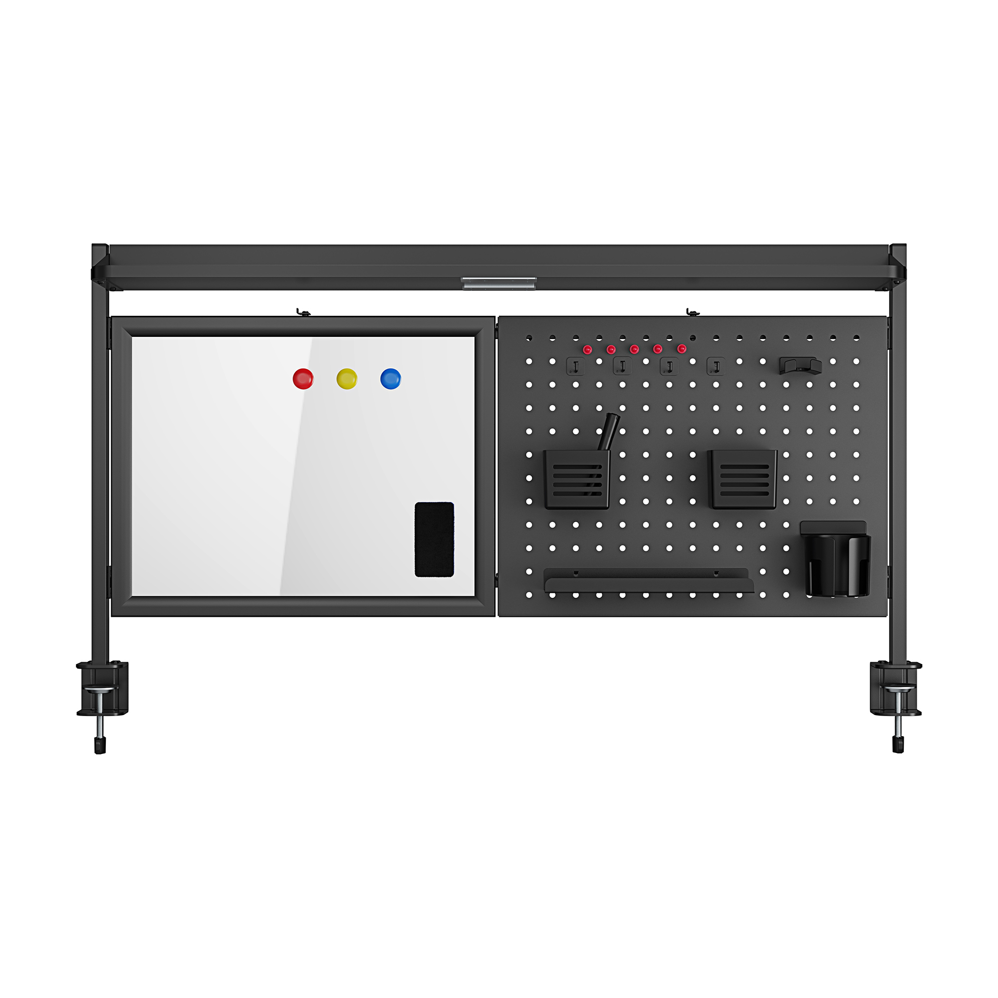 Acest organizator de birou cu panou perforat este potrivit pentru elevi, studenti si adulti. Il poti folosi pentru depozitarea accesoriilor de birou, castilor, cablurilor, cheilor, foarfecelor, canii sau notitelor importante. Se monteaza pe blaturi cu grosime intre 1 si 5 cm.