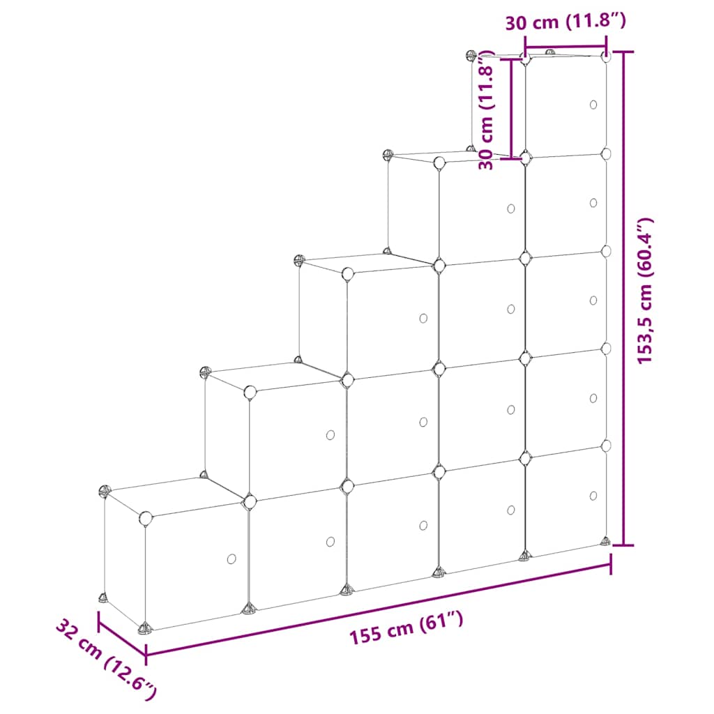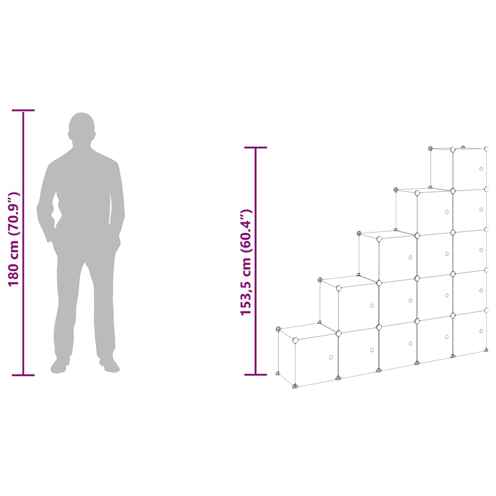Organizator cub de depozitare cu 15 cuburi și uși, PP transparent GartenMobel Dekor