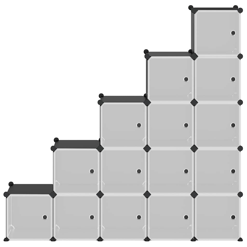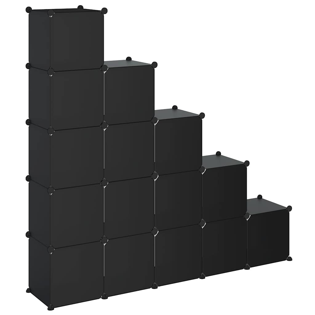 Organizator cub de depozitare cu uși, 15 cuburi, negru, PP GartenMobel Dekor
