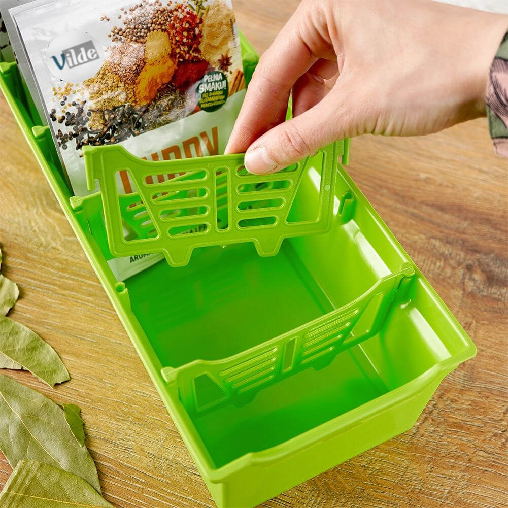 Organizator pentru plicuri de condimente verde, 30x13x8 cm, 6 secțiuni