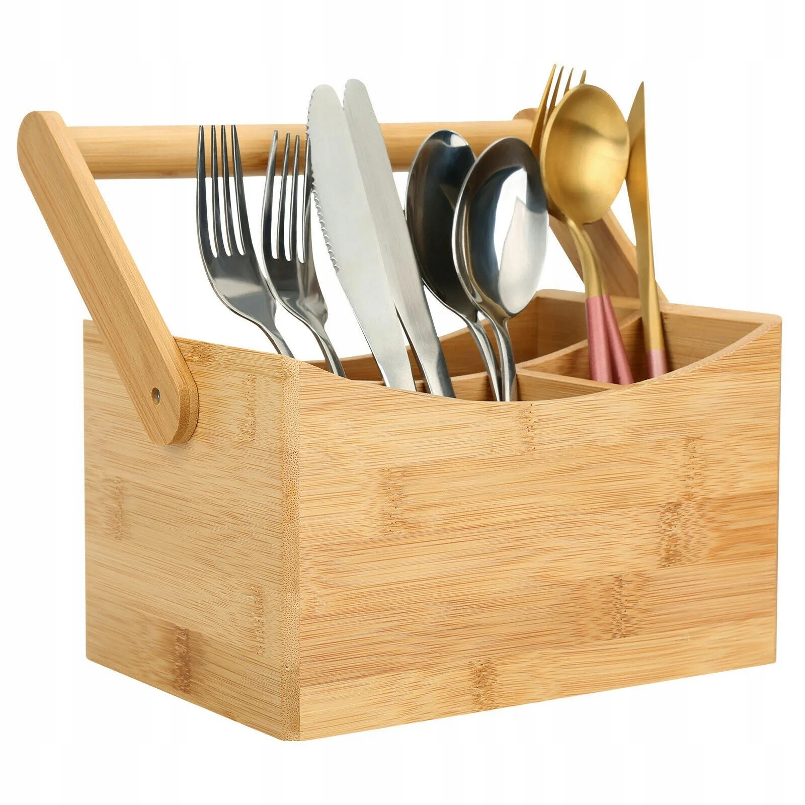 Organizator pentru tacamuri si servetele din bambus cu maner, 24x14x24 cm