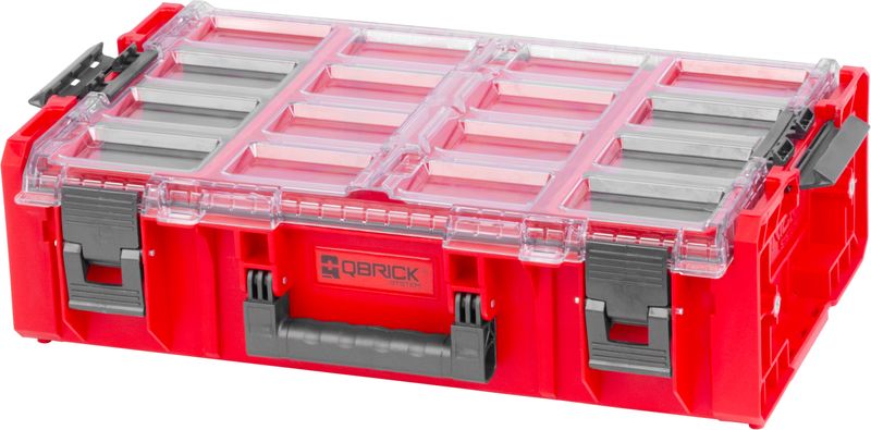 Qbrick System ONE RED Ultra HD Organizer 2XL este un organizator modular premium, realizat din plastic ultra-rezistent, proiectat pentru lucru intens în atelier, pe șantier sau în service. Ediția RED ULTRA HD se remarcă prin rezistență foarte bună la lovituri și utilizare în condiții dificile, inclusiv la temperaturi sub 0°C.