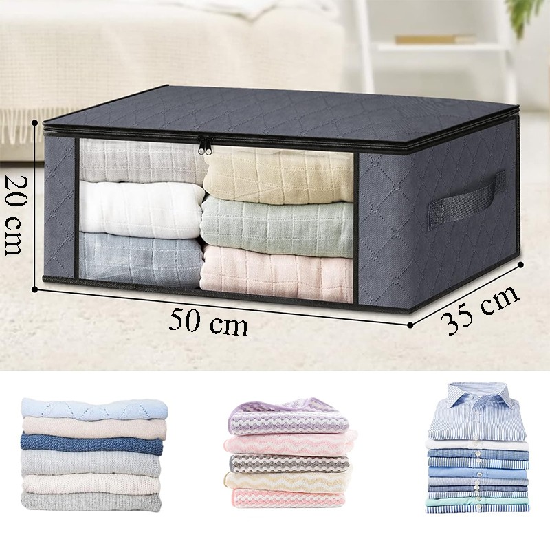 Organizator textil pentru haine 35L, cu fereastra transparenta si manere, 50x35x20 cm