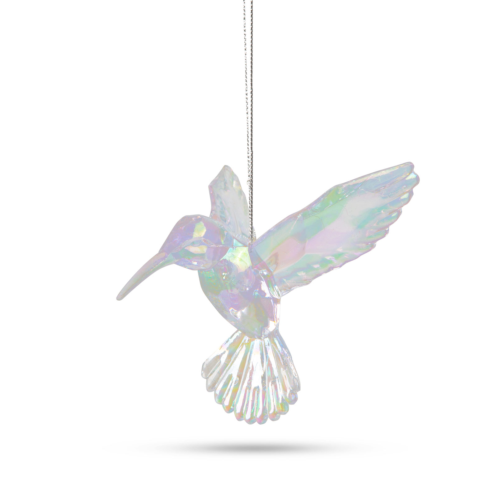 O pasăre colibri cu un efect irizat deosebit ce împodobește elegant bradul sau orice alt aranjament festiv. Ornamentul acrilic este ușor, dar durabil, astfel încât poate fi reutilizat an de an. Datorita efectului irizat, culorile ornamentului se schimba in functie de umbre si lumina, fiind si mai magic. Datorită aspectului său elegant, acest decor de Crăciun poate fi și un cadou excelent pentru cei dragi sau prieteni.