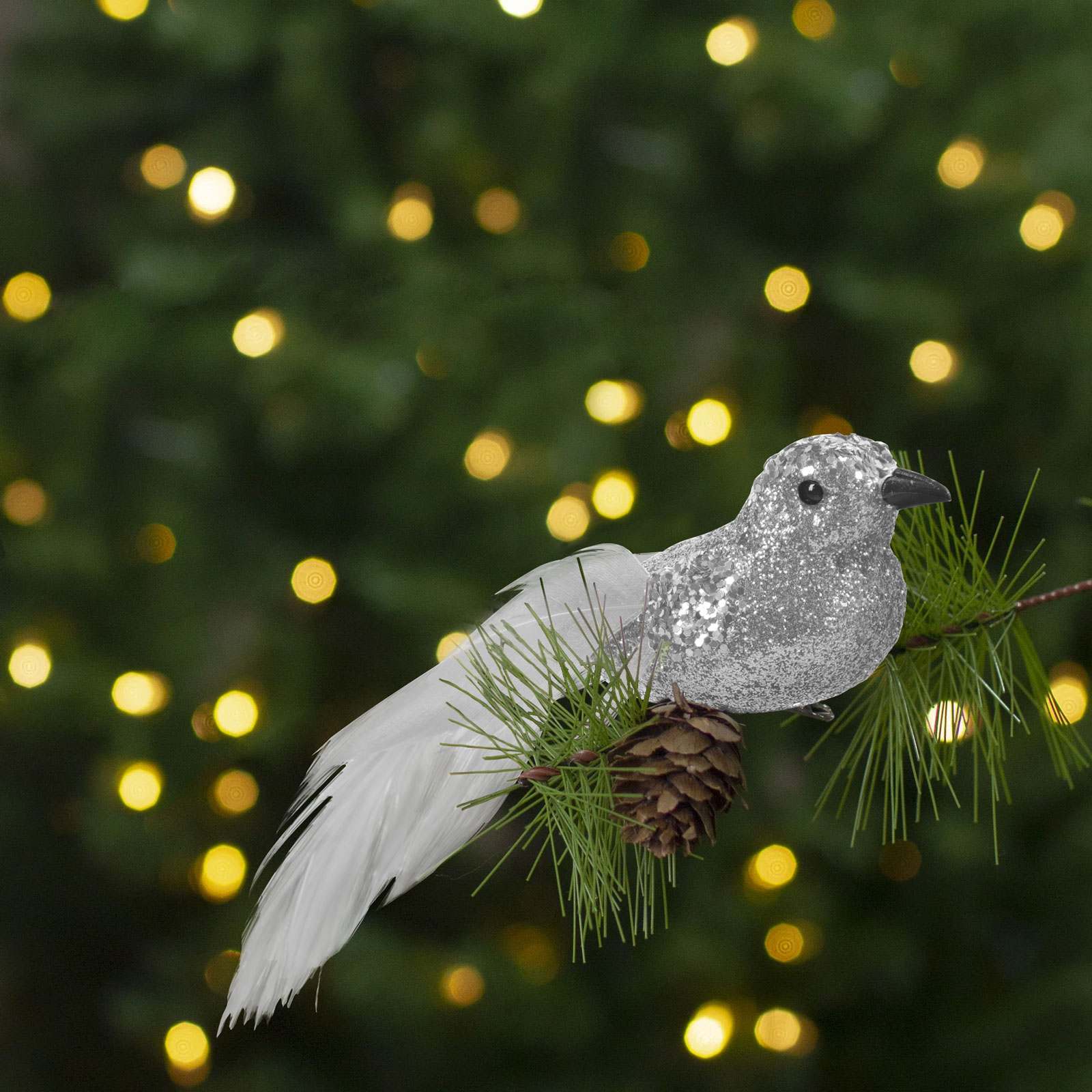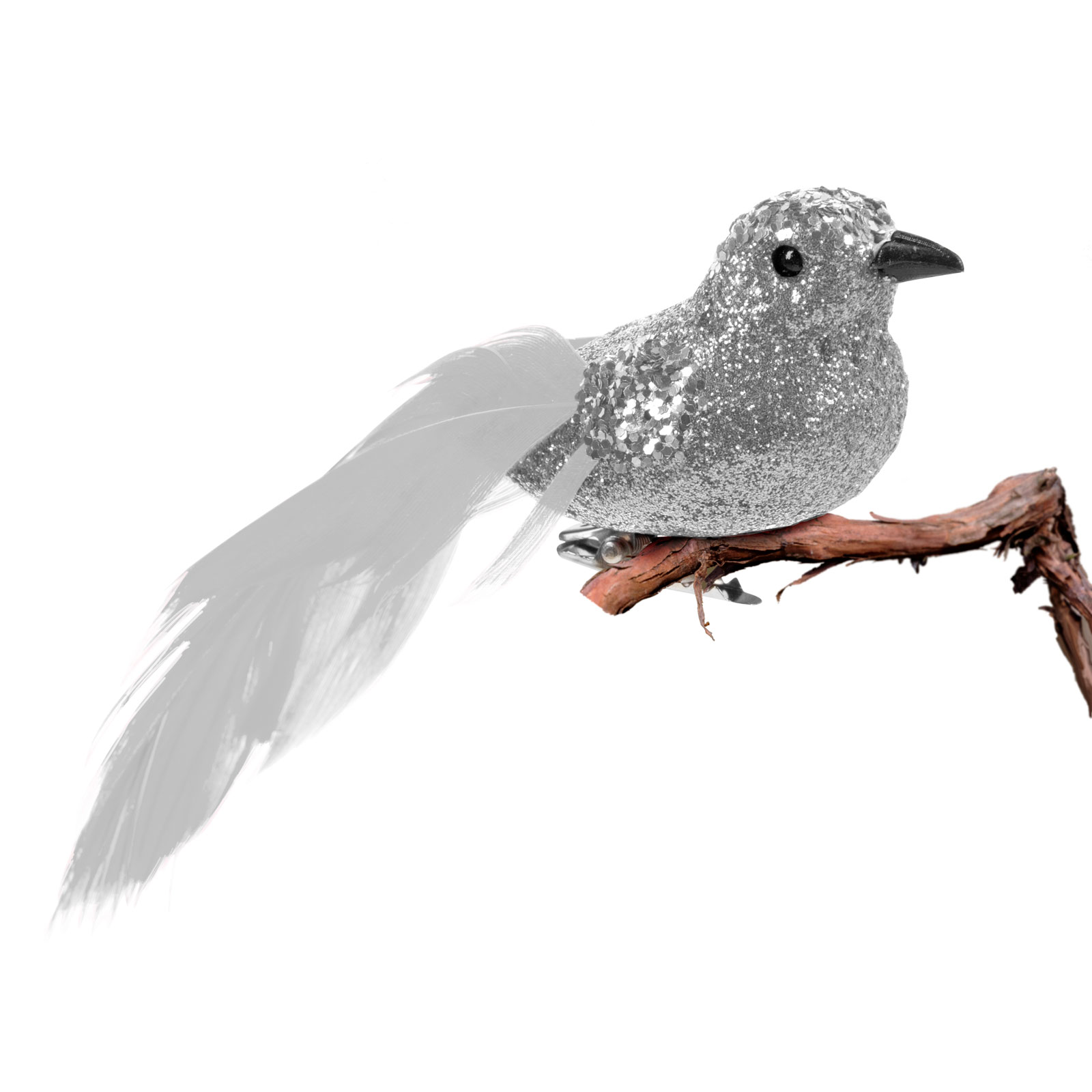 Ornament de Crăciun - pasăre cu sclipici - cu clemă - argintie - 2 buc/pachet Best CarHome