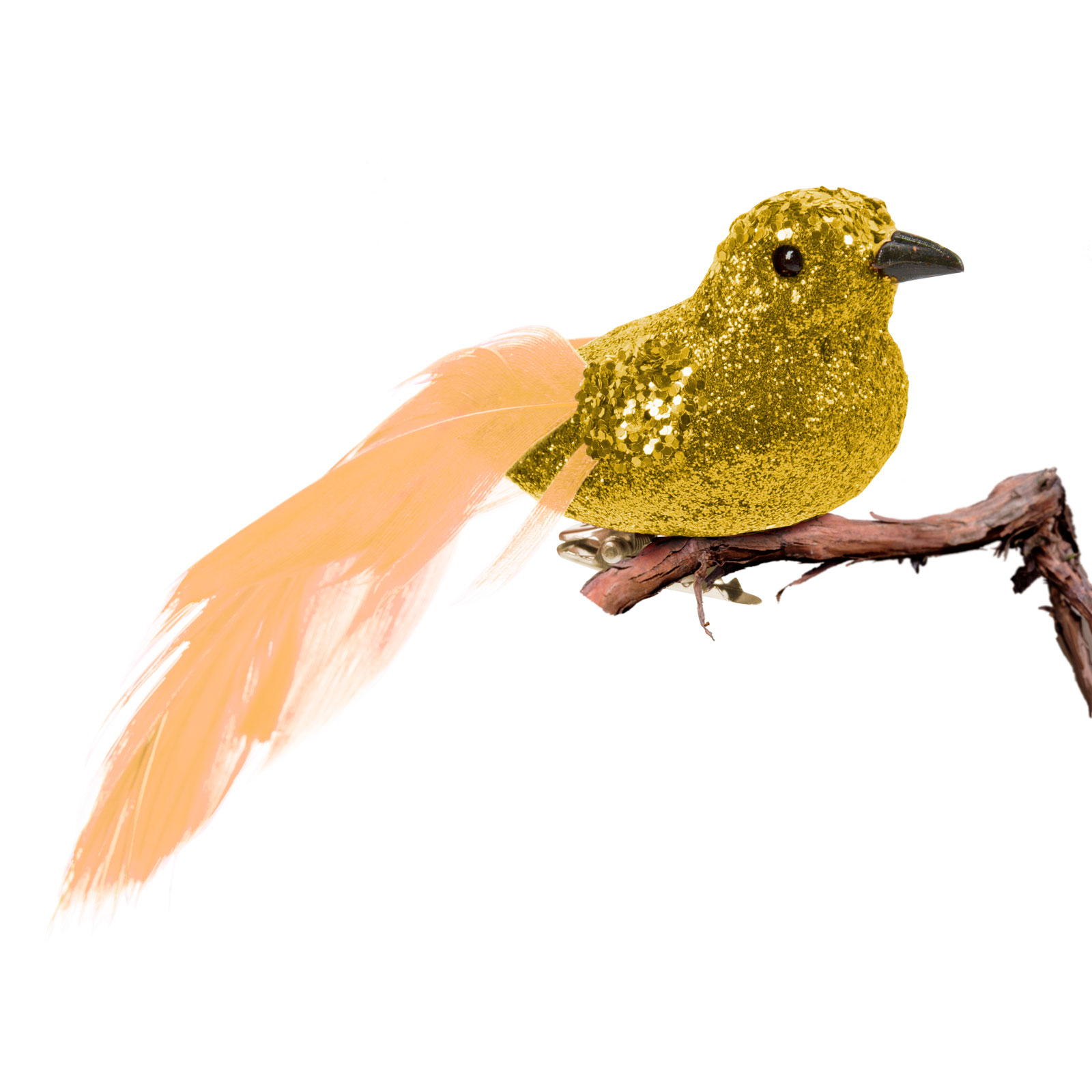 Ornament de Crăciun - pasăre cu sclipici - cu clemă - aurie - 2 buc/pachet Best CarHome