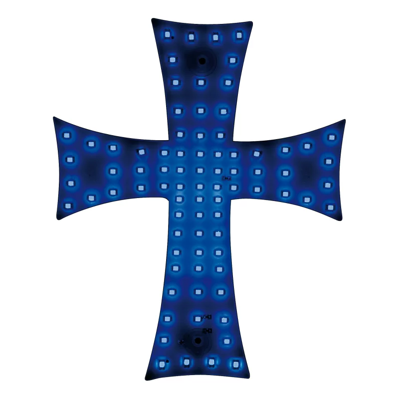 Adauga un plus de stil cabinei cu acest ornament interior LED 24V in forma de cruce albastra, potrivit pentru camioane si alte vehicule cu alimentare la 24V. Echipat cu 81 LED-uri SMD, produsul ofera o iluminare clara si uniforma, fiind ideal pentru decor interior auto. Se conecteaza usor la bricheta si include comutator pornit/oprit pentru utilizare practica de zi cu zi.