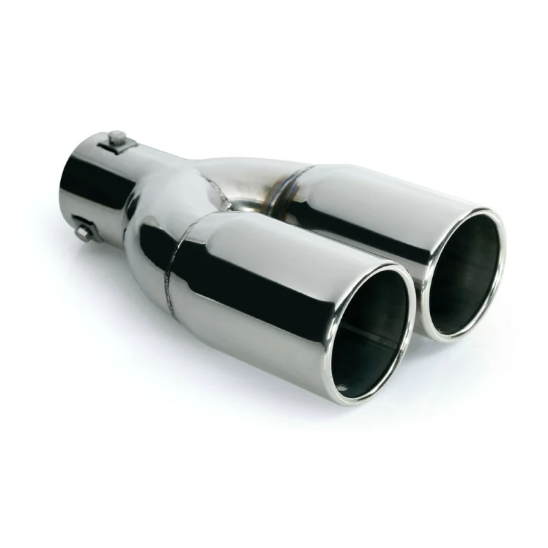 Designul cu evacuare dublă oferă un look modern și bine definit, fiind ideal pentru îmbunătățirea esteticii exterioare fără modificări complexe. Finisajul cromat lustruit completează aspectul mașinii și oferă o prezență vizuală atractivă.