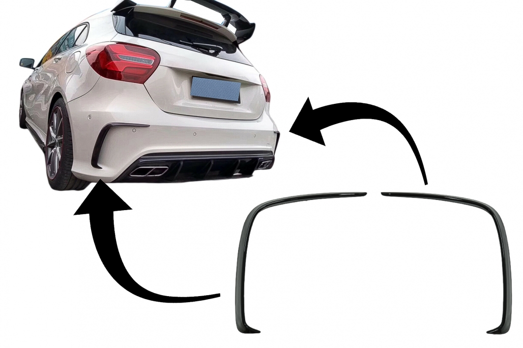 Ornamente Bara Spate Flapsuri Mercedes A-Class W176 (2012-2018) Negru Lucios