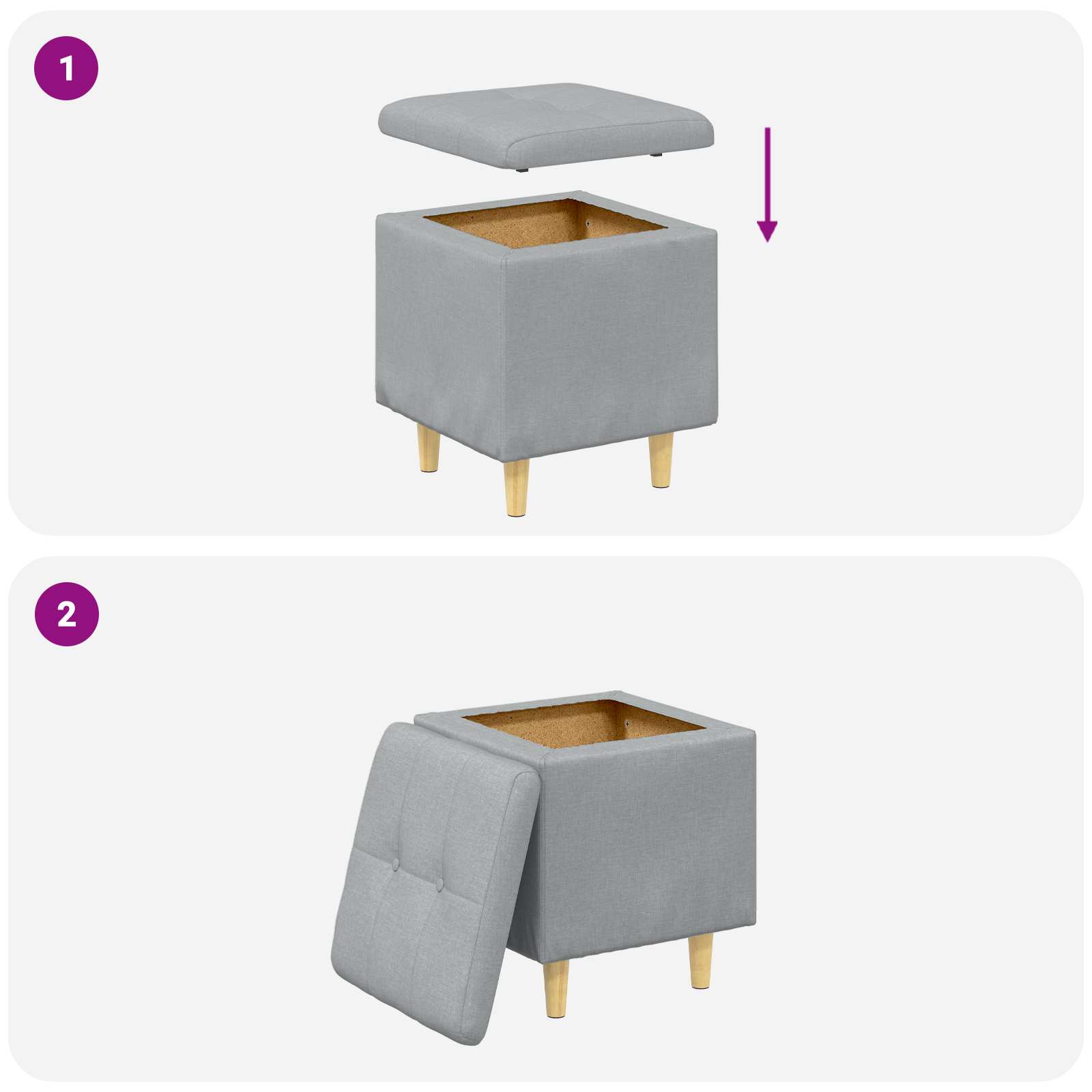 Ottoman cu Depozitare Gri deschis 40 x 40 x 45 cm țesătură GartenMobel Dekor
