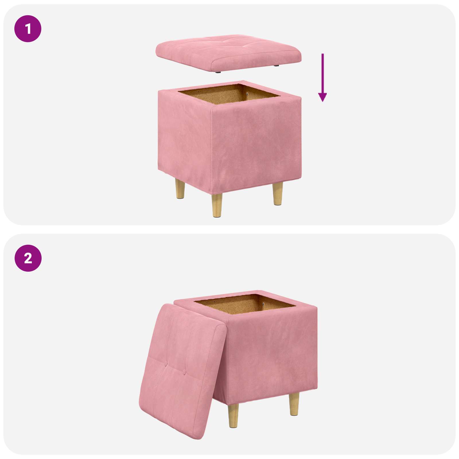 Ottomană de depozitare cu pernă Roz 40 x 40 x 45 cm Catifea GartenMobel Dekor