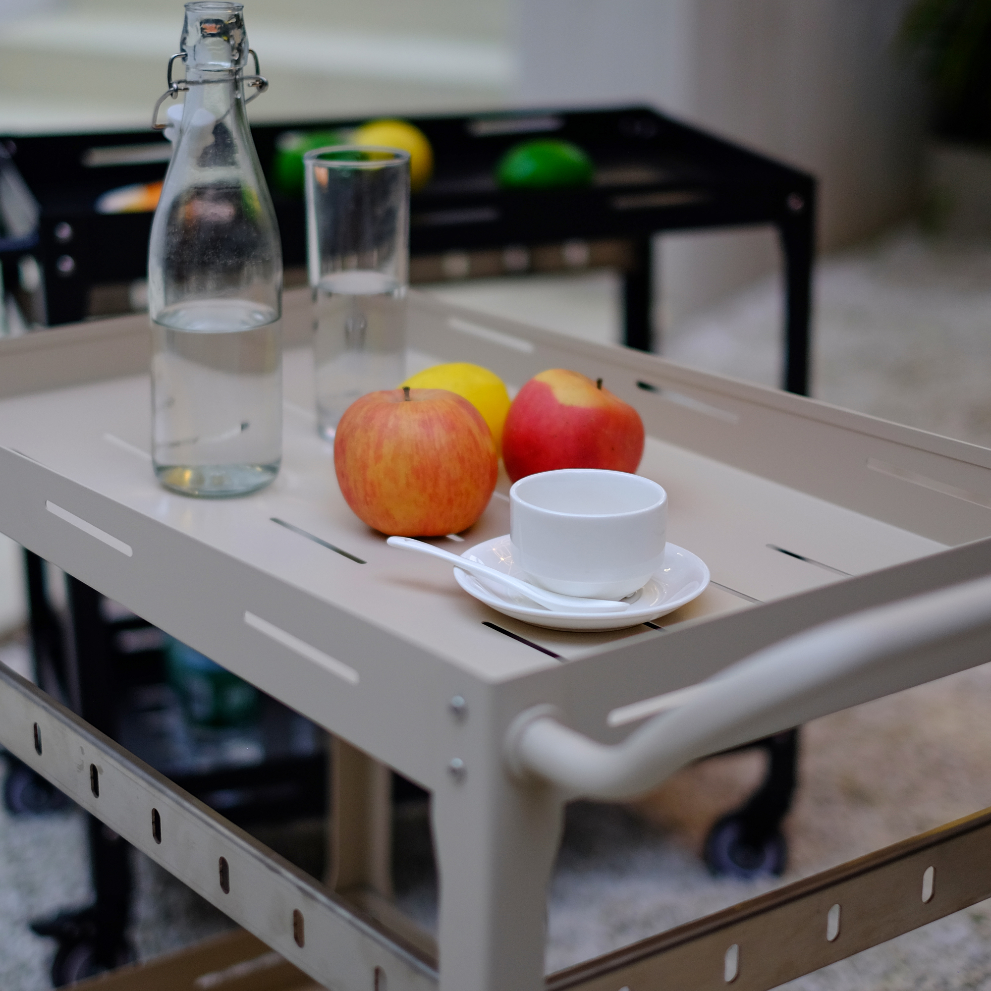 Mit zwei großzügigen Ablageflächen schafft der Wagen ausreichend Platz für Speisen, Getränke, Gläser, Teller und Snacks. Die stabile Bauweise gewährleistet, dass alles sicher verstaut ist und jederzeit griffbereit bleibt.