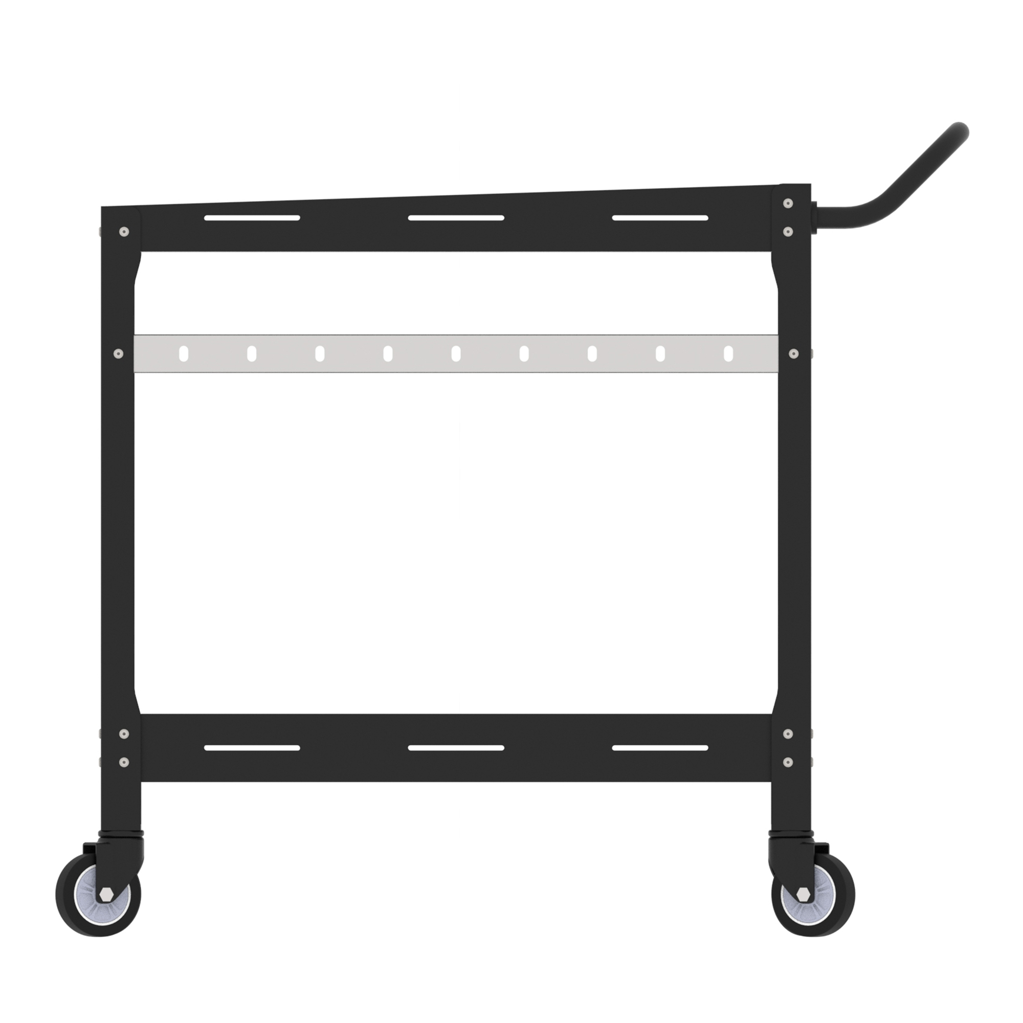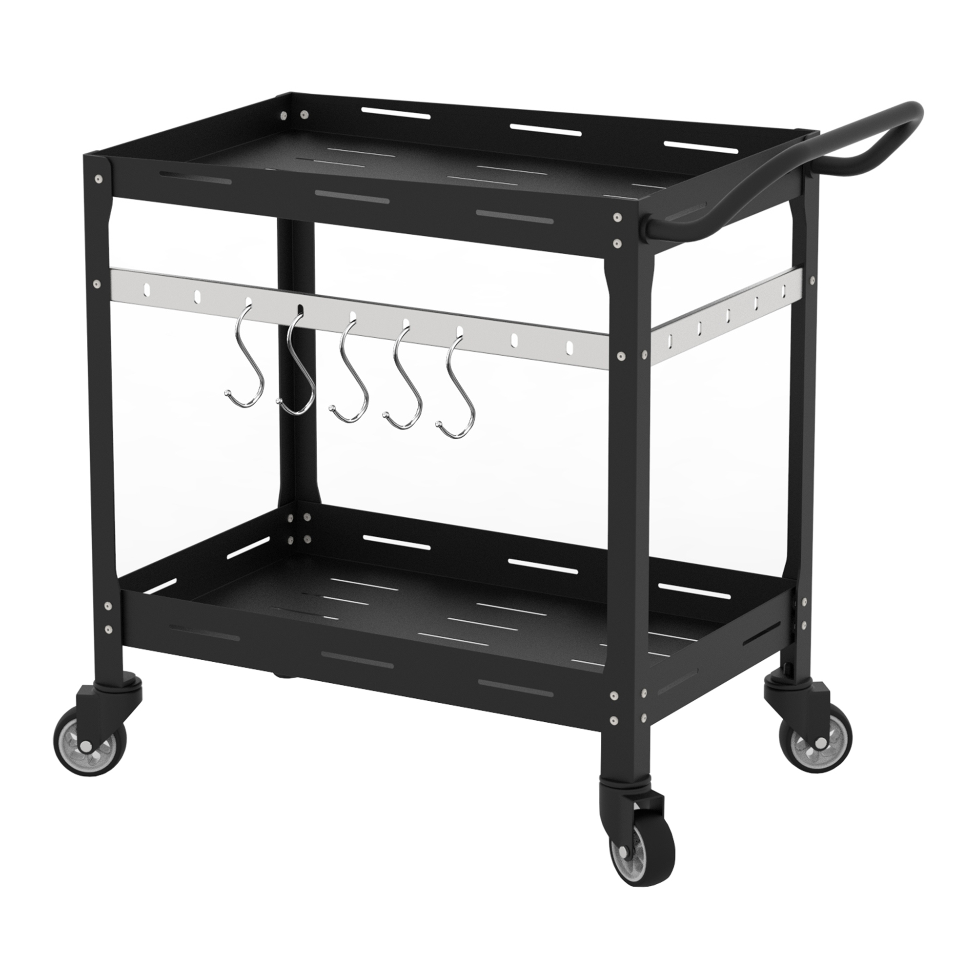 Vier leichtgängige Rollen und ein praktischer Griff ermöglichen ein müheloses Verschieben des Servierwagens. Zwei der vier Rollen sind mit Feststellbremsen ausgestattet, damit der Wagen bei Bedarf sicher an Ort und Stelle bleibt.